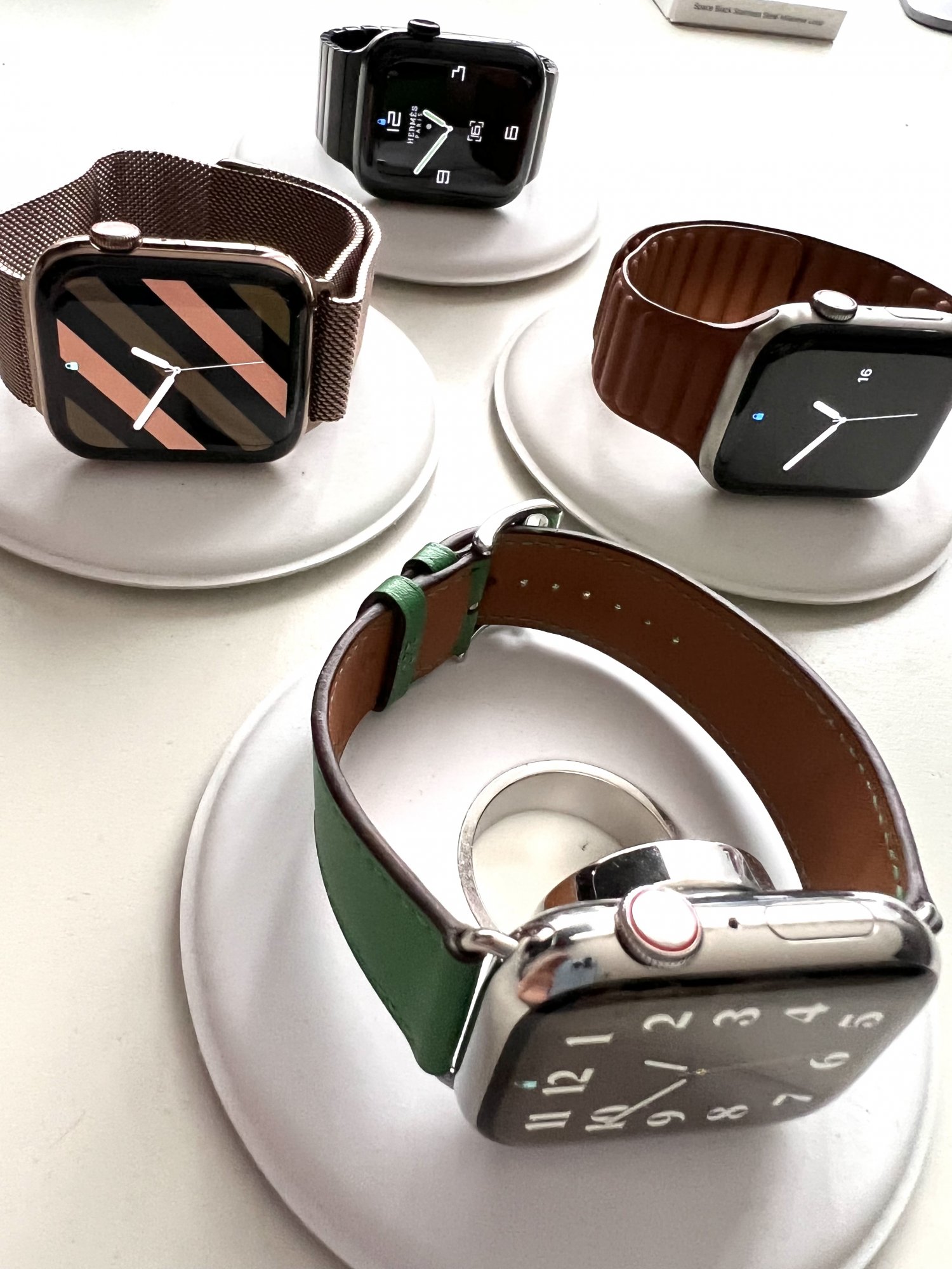 Very nice collection of docks! I only have docks for two of my watches 🤪After stumbling upon a (relatively) cheap S6 SB Hermès, my little collection is very much complete. Silver Stainless is S7, gold Stainless and natural Ti both S5. Now come on, Apple, S8 Ceramic needs to happen …