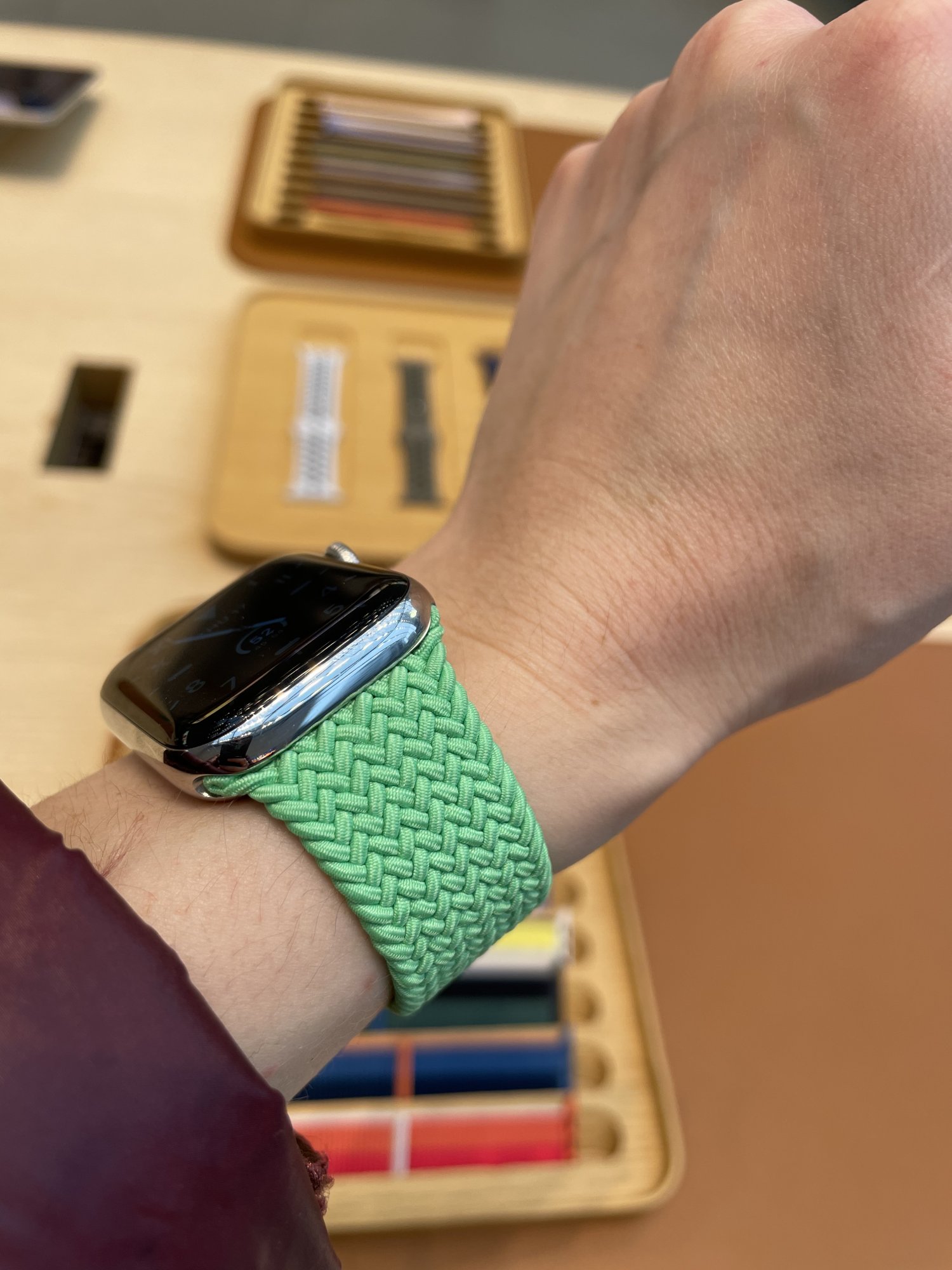 If anyone has the sequoia green & golden brown leather link band paired with a SS Silver Apple Watch, can you post some pics plz, thank you.