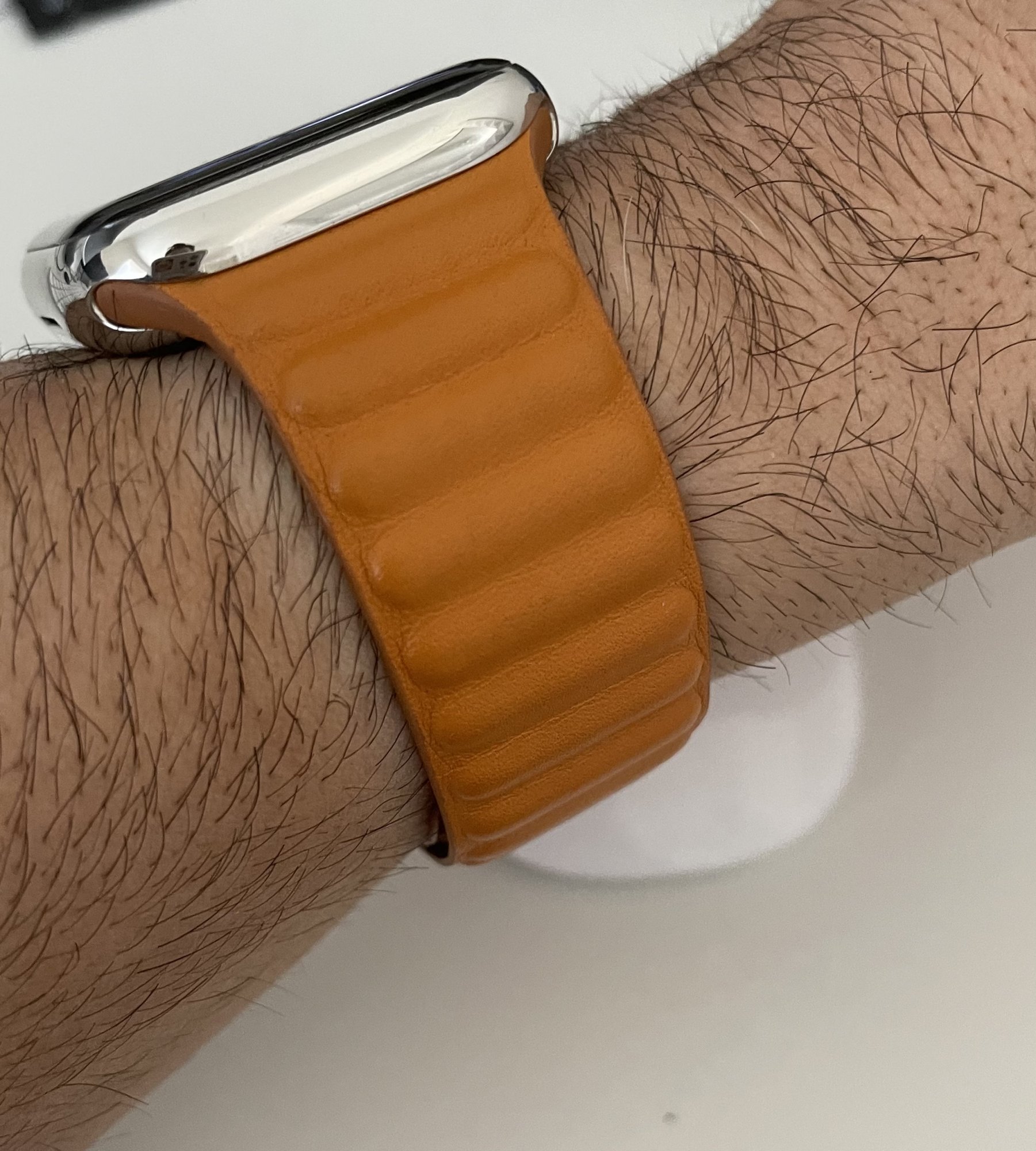 Golden Brown on SSIf anyone has the sequoia green & golden brown leather link band paired with a SS Silver Apple Watch, can you post some pics plz, thank you.
