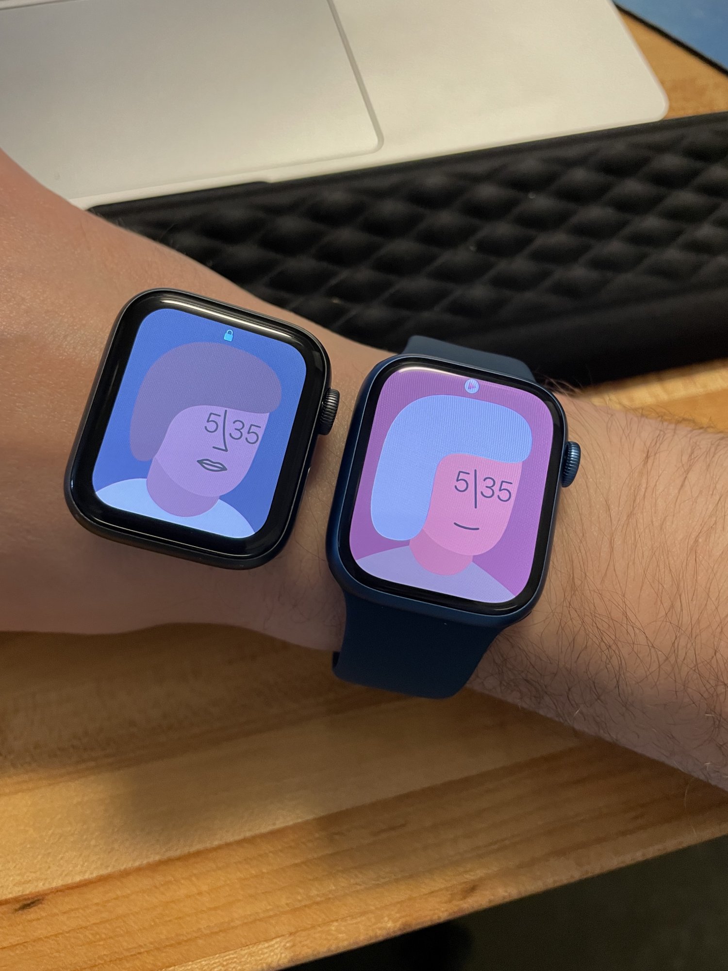 The bigger screen/smaller bezel feels like the big one , its subtle but in other situations its obvious to me. feels like I moved up to a 44mm old school or something visibility wise haha, from memory (the largest size watches aren't for me, and I have way too many smaller bands to even consider switching)