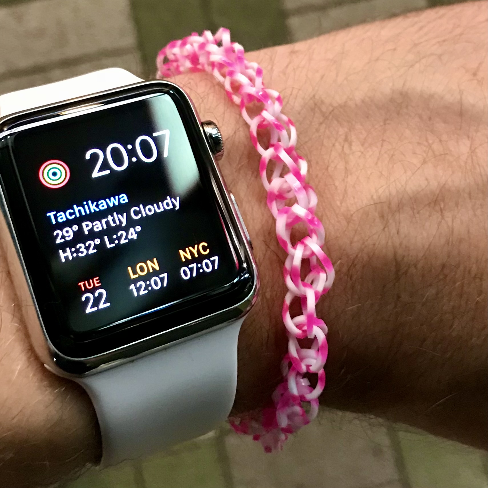 Nice pics, and impressive you can keep the band looking sharp for so many years. I have “only“ 3 bands so far but, after using a Fitbit for years, I can already tell these Apple Watch bands will last a good long time, at least I hope so!OG white back in 2017 on my SO (with a pink bracelet my daughter made for my birthday):