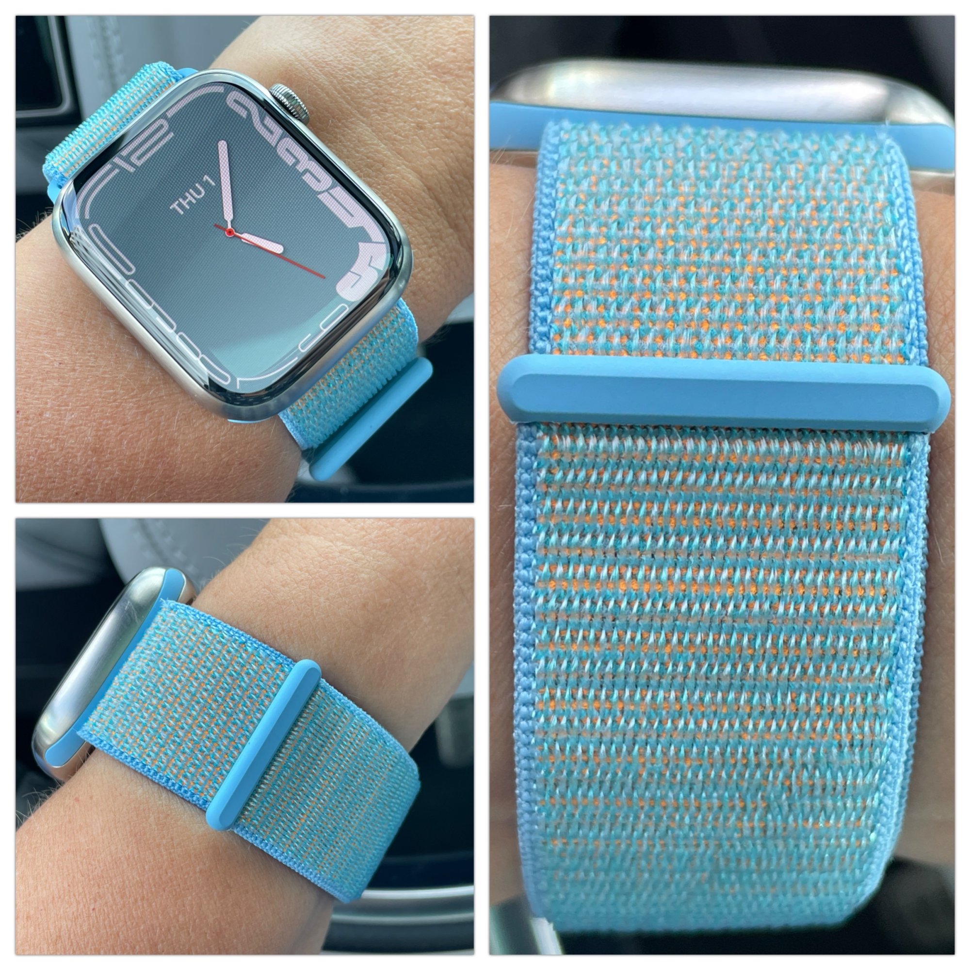 I already forget our trick for remembering which is which. Was it cornflower picking by day (lighter orange), cerulean sweater from Devil Wears Prada for cold nights (dark orange)? 😁Cornflower Sport Loop. I am so pleasantly surprised by this band. I didn't realize there were these gold/orange threads - I thought from pictures I'd seen, it would be some greenish threads. As always, I'm in love with the way these bands are made - love the 2018-2019 generation sport loops!