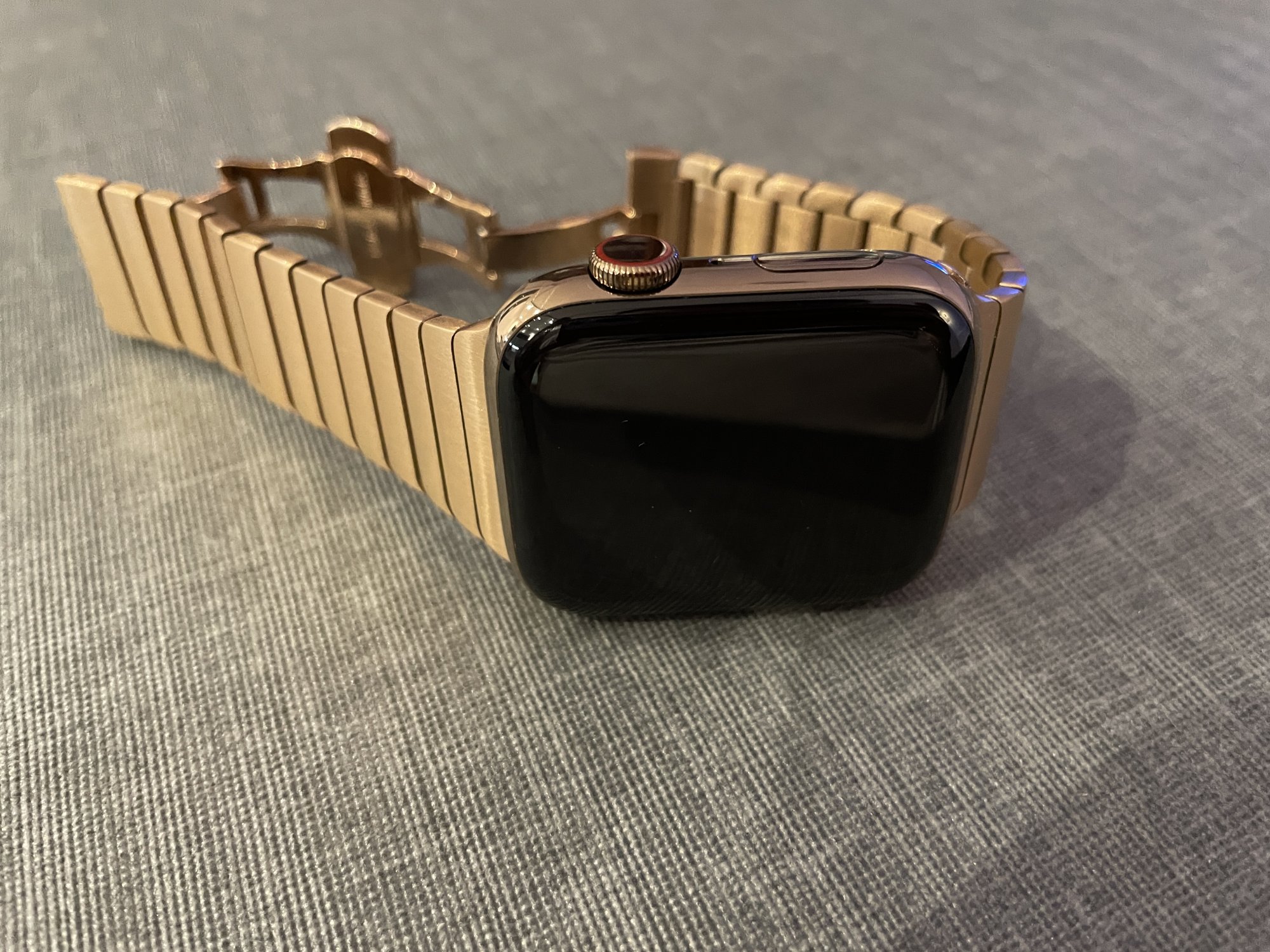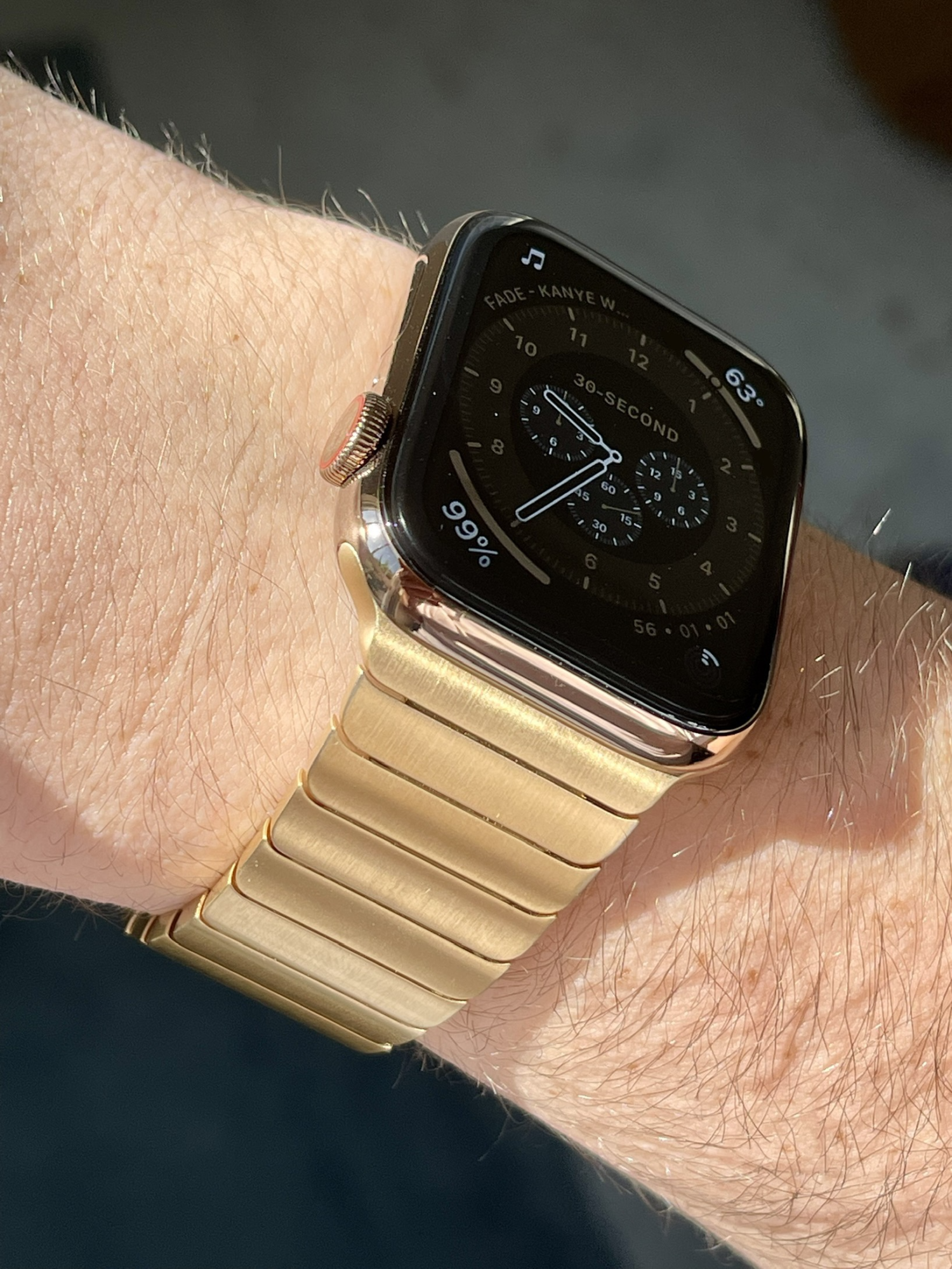 I posted photos somewhere (don't remember where, probably not on MacRumors) of my OEM link on the S4/5 and S6/7/8 gold stainless models side by side. Here's the photo from my Discord. you can see not even *mine* matches either one exactly. I think it matches the 18kt Edition best, but I obviously don't have one of those.