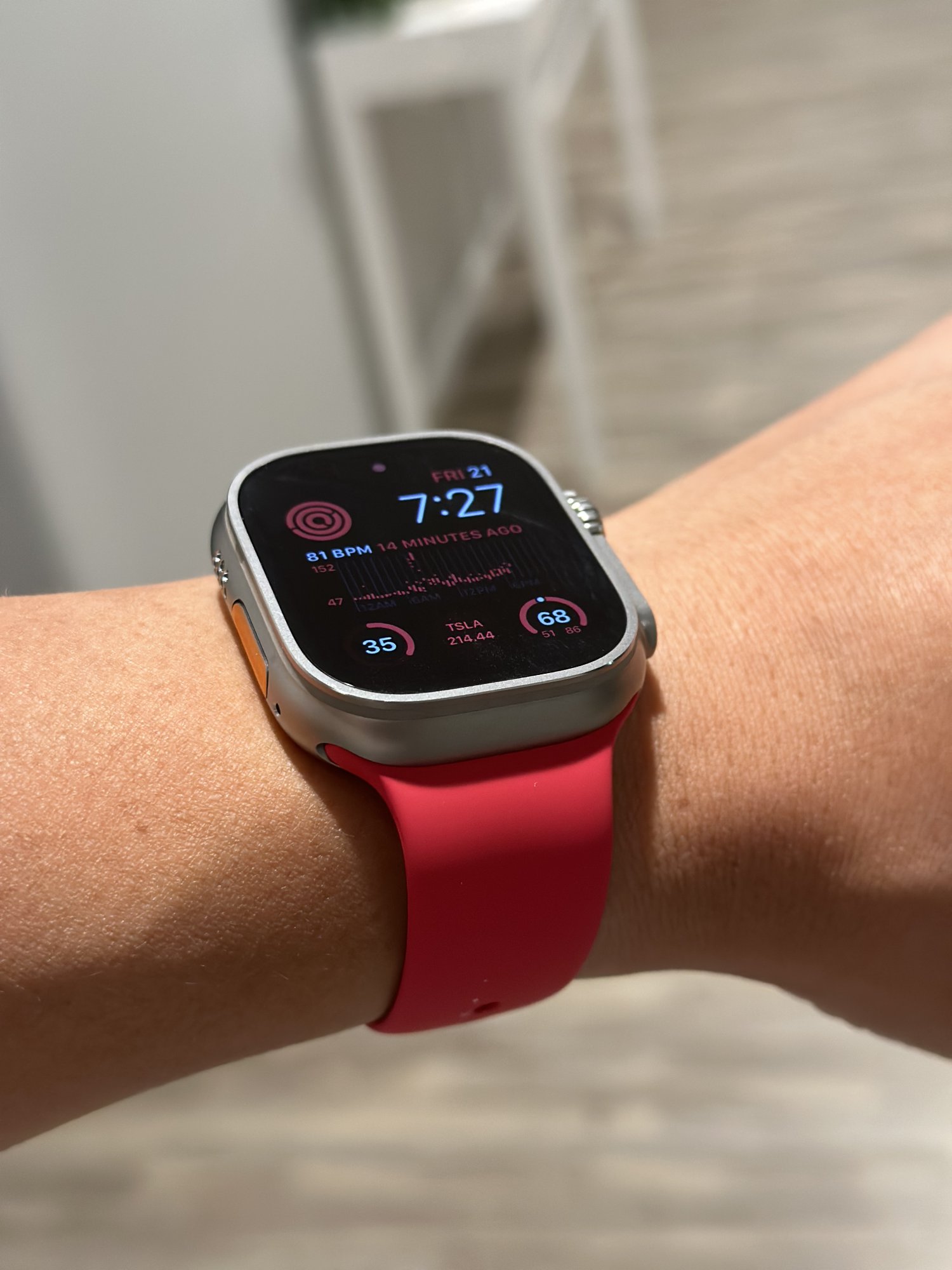 it's a nice match with the button ..I think I have a UAG band here in orange I have to search ..hahaLove the ultra and the color of the watch face but it kills me how huge the bezels look with that particular WF. For some reason that WF looks better on the series 7/8 to meProduct Red. I think it looks pretty good on the Ultra.