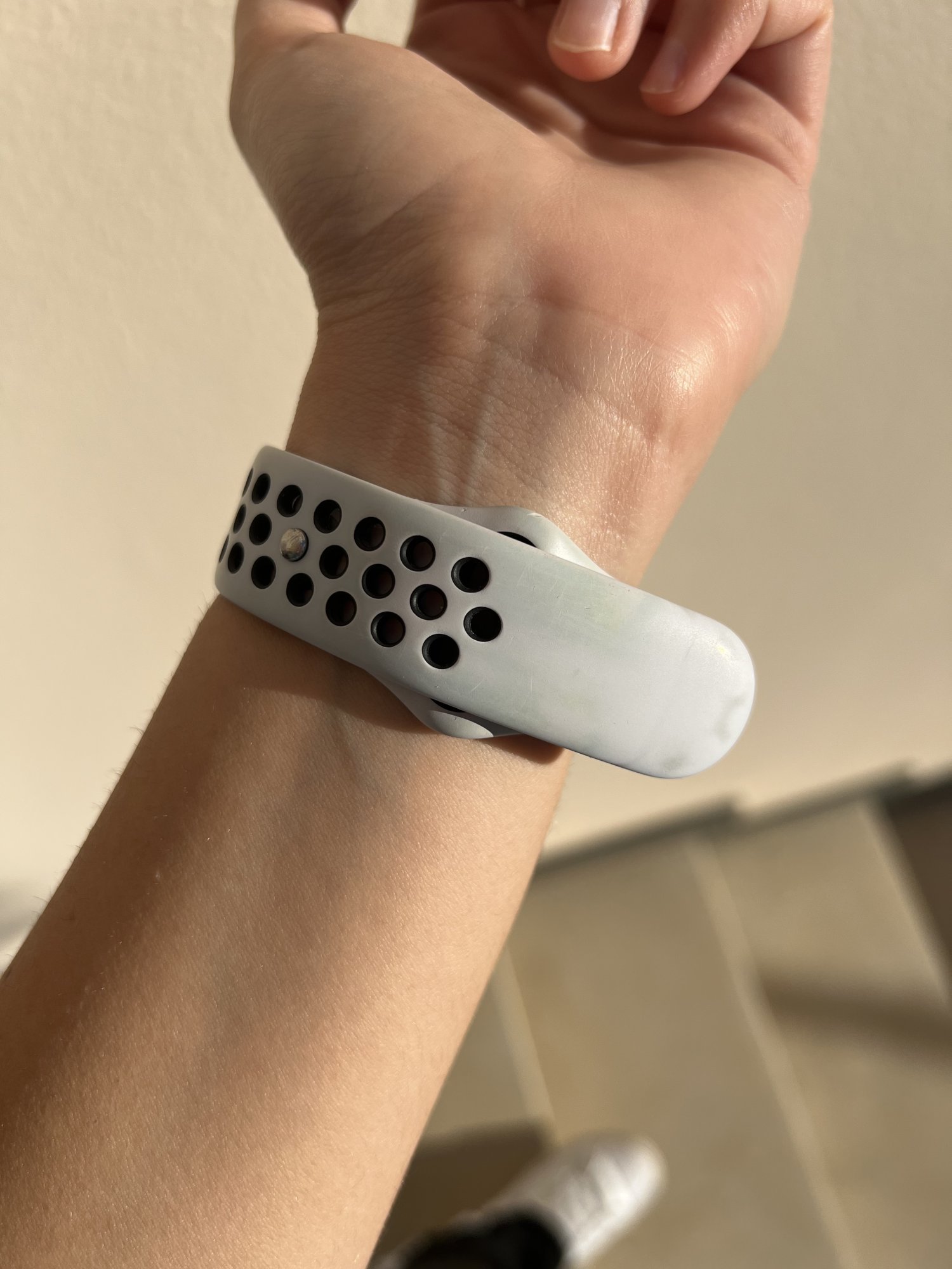 Yes, I've had that problem and almost nothing seems to clean it off completely!! Hope someone has something that works and thanks for posting this. I should have and simply didn't think about posting it!!!Purchased this Platinum/Black for litereally a couple of € aware that it was not in pristine conditions. It looks fine on the wrist and I'll be mostly use it for running and outdoor activities, but I was wondering if there's a way to clean up a bit the black stripes on the inside. TBH I have yet to see a well used Platinum/Black band that hasn't changed color on the inside like this. If somebody hasn't had this experience with this band, what's your secret?!