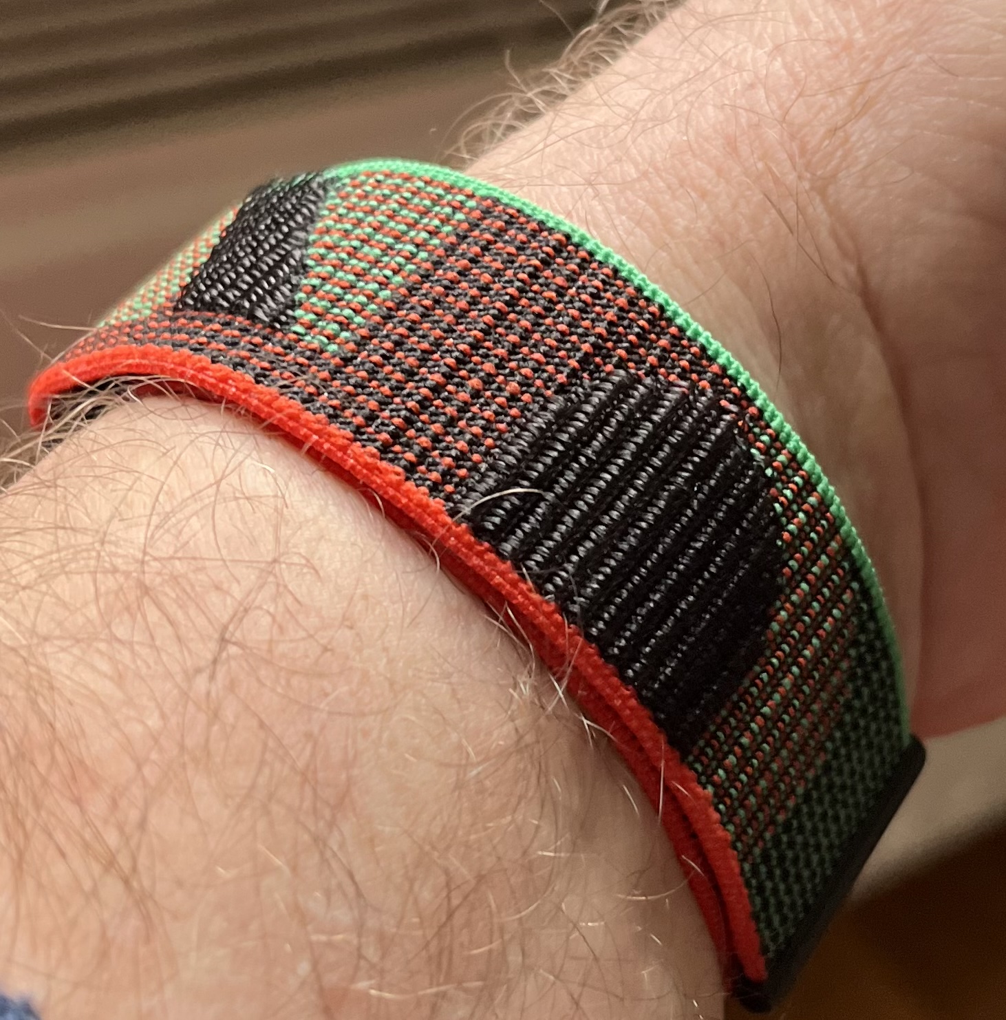 The Pride sport loop from last year is recessed in the cursive lettering. Does the Unity 2023 feel the same? Do the red and green fibers feel like they stand proud of the black ones?