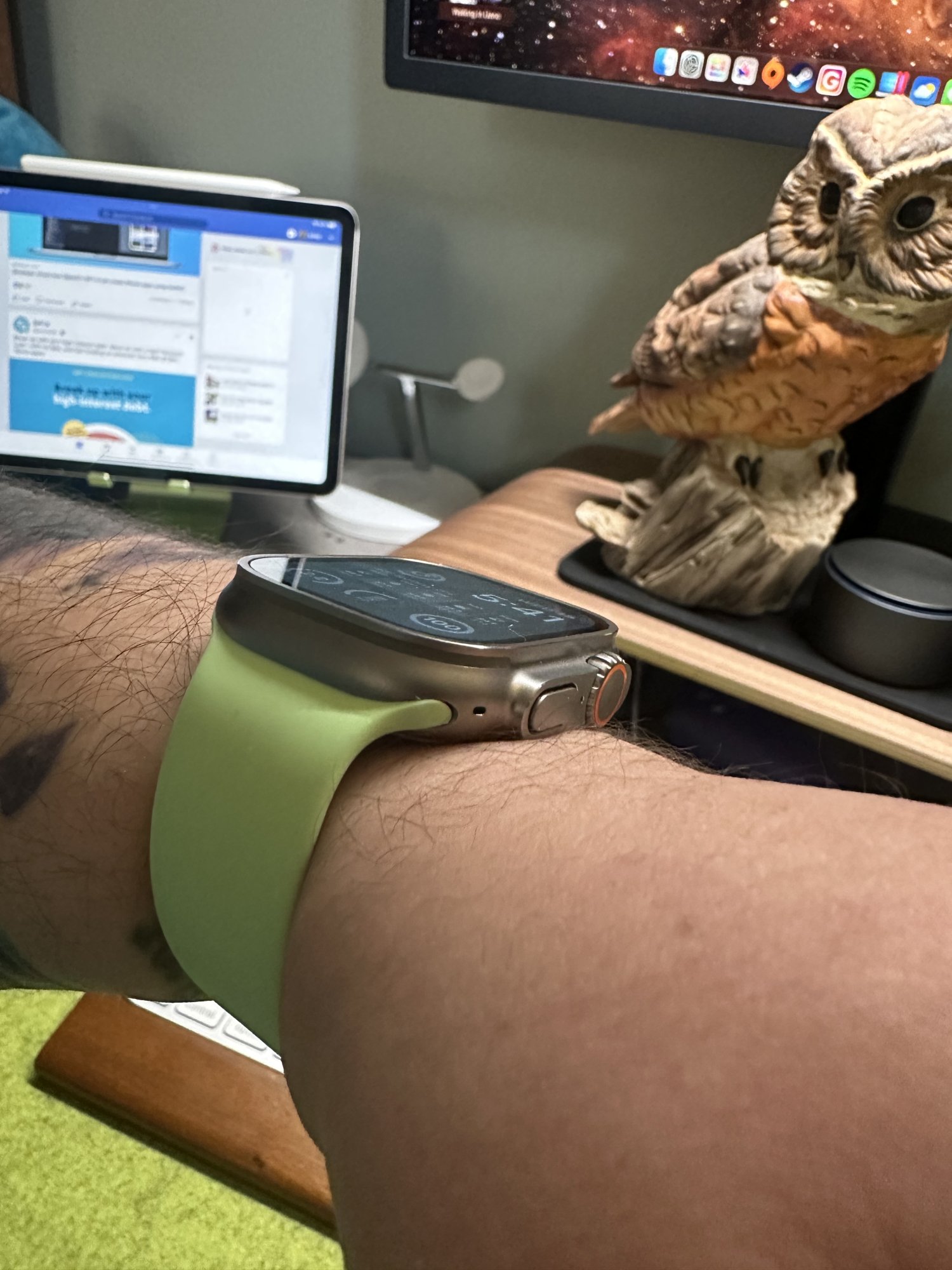View attachment 2174326View attachment 2174325Sprout Green and WATCH Ultra 🌱💚 pictured with Inverness Green BSL and Grovemade wool desk mat for color reference. This is my first regular solo loop and I love it! I am fat and size 9 fits perfectly. I was worried it’d be too small, I measure at 10 but like with the BSL I went down.