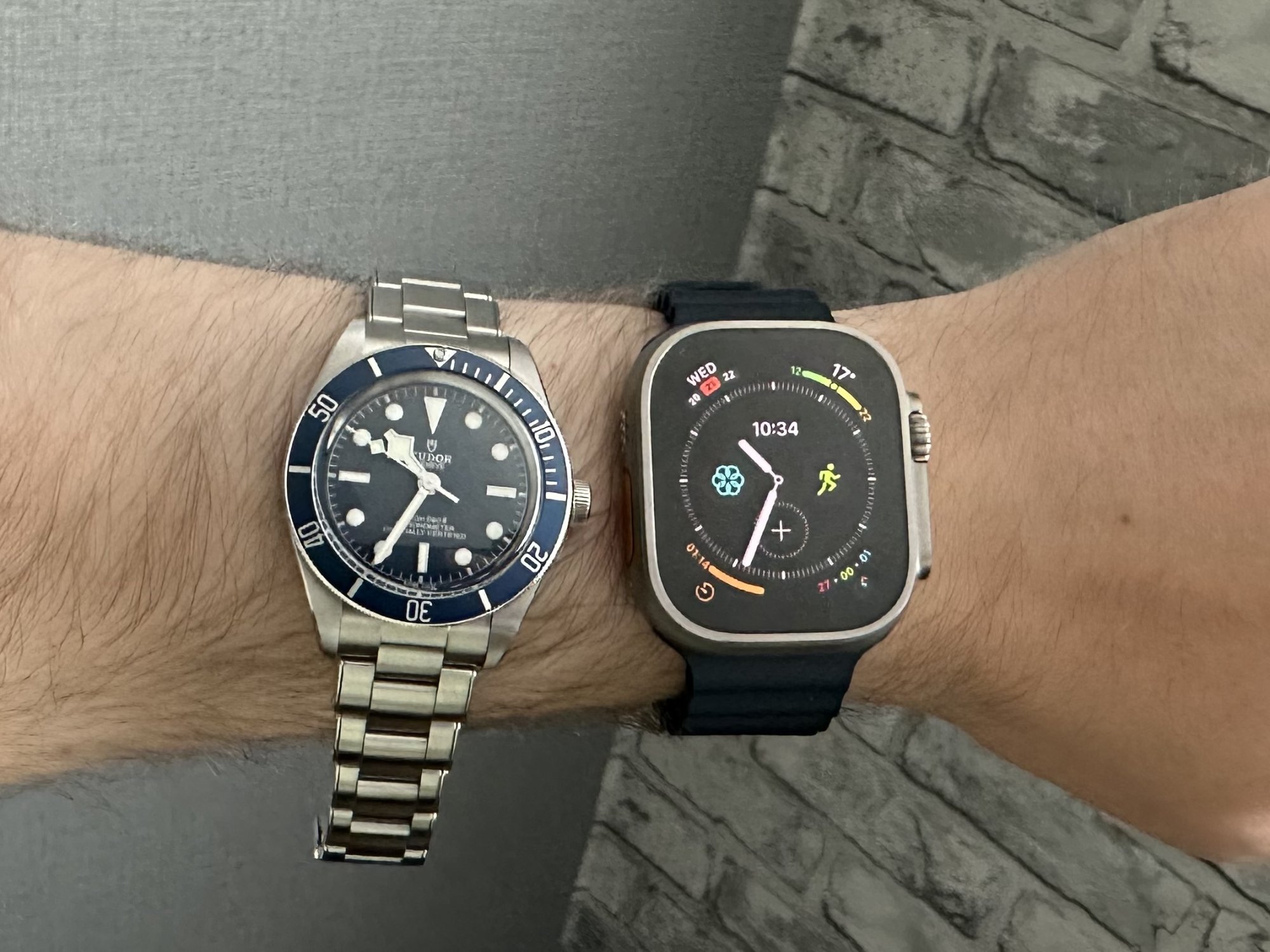 The 41mm AW is the only one that might actually be mistaken for a regular mechanical watch from a distance. The Ultra is all wrist computer, which is fine, btw. It’s not like these things need to look like mechanical watches. It was just something I was pointing out 🍻