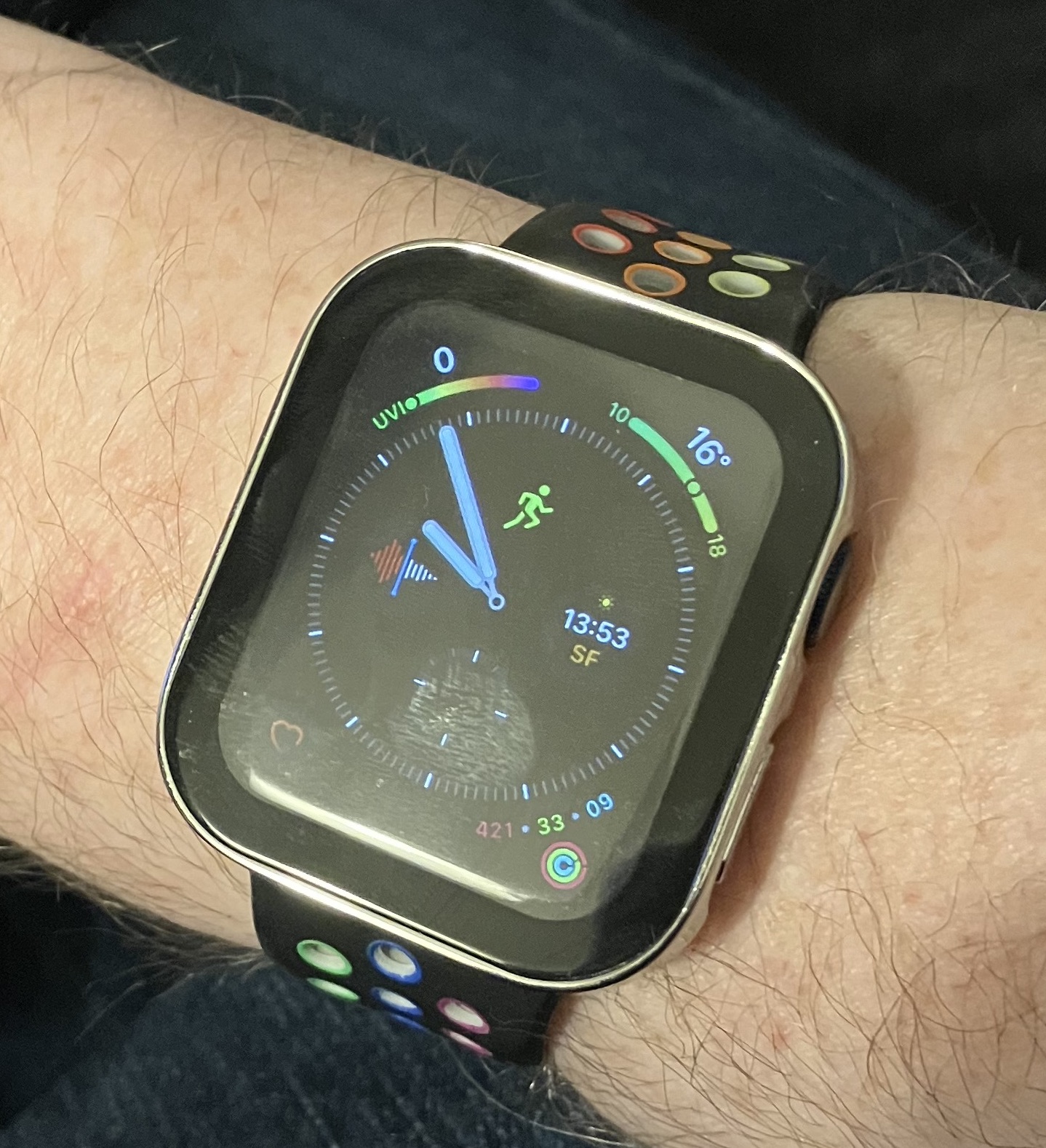 is that a knockoff apple watch?S6 Infograph face (not decided on what I want yet) + £6 rainbow holes sports style band + £5.50 "waterproof" watch shell. (Haven't been out in rain yet to check)