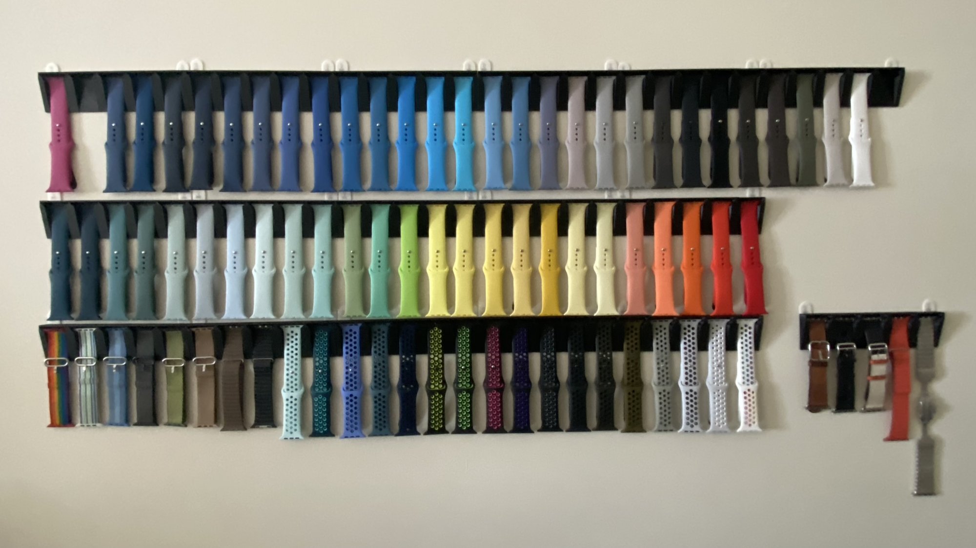 Bottom right: Black Gen 1, Blue Horizon, Midnight Blue Gen 2, Black Gen 2, Gray/Black Ceramic, Fog, White Gen 2, Hermes, Yellow Gen 1, Product Red Gen 3, Khaki sport