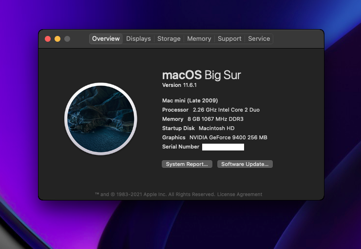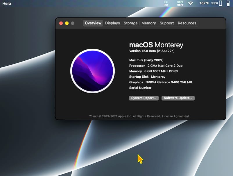 Steve Jobs-era quality and Tim_Apple-era greed in one screen shot! This old Mini still perfectly useful on the latest Monterey Beta 7 courtesy of OCLP _030.