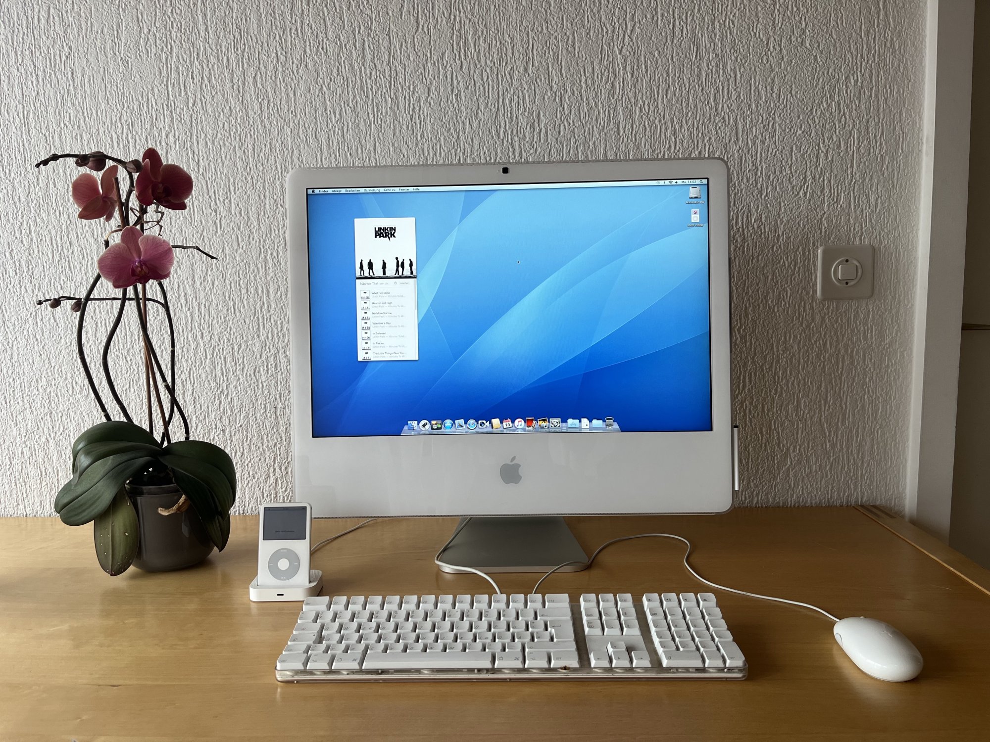 Lately I unpacked my iMac 24" from 2006 and was surprised how big it is. Also it's quite unique and beautiful compared to the actual design language. I miss this old time. Found also my old iPod Video boxed in that iMac box which was recognized fast by my iMac.