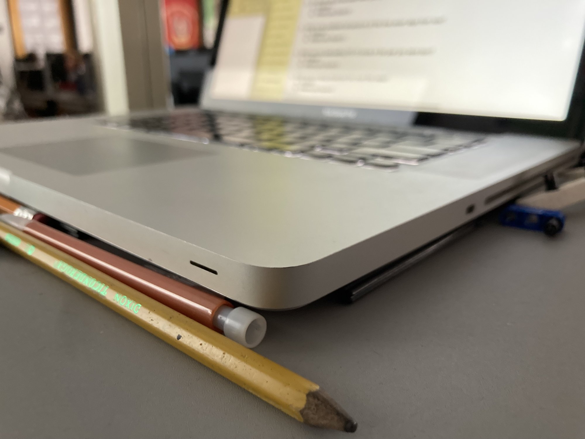 This machine lives in my office off the side of my classroom. It's mostly used for YouTube at lunch and planning after school. I love the giant screen on this beast, and it's the machine that got me addicted to 27" iMacs. It used to be my old roommate's machine, and he gave it to me several years ago knowing that while he had outgrown it, I have a bit of a thing for pushing old machines well past their expiration dates.