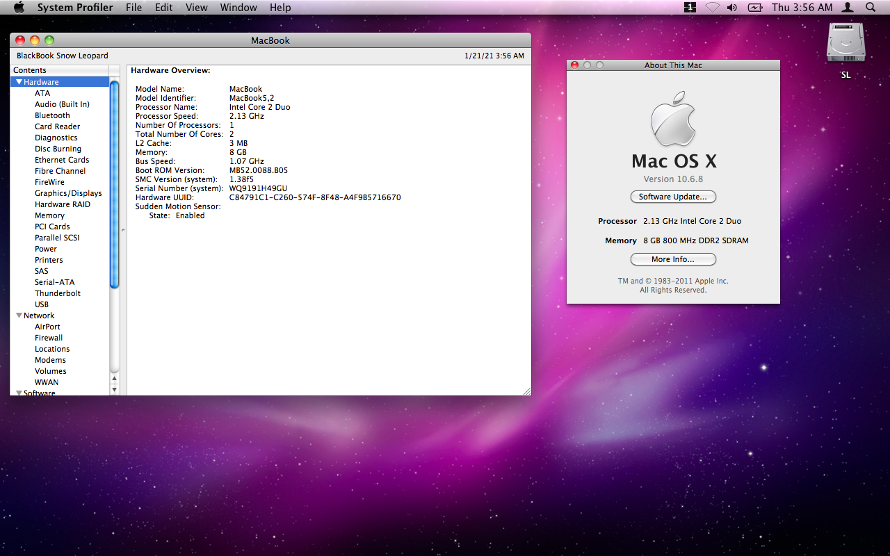 Mid 2007 MacBook 2,1 running 10.6.8 Snow Leopard. First Mac so it's special. Really good condition.