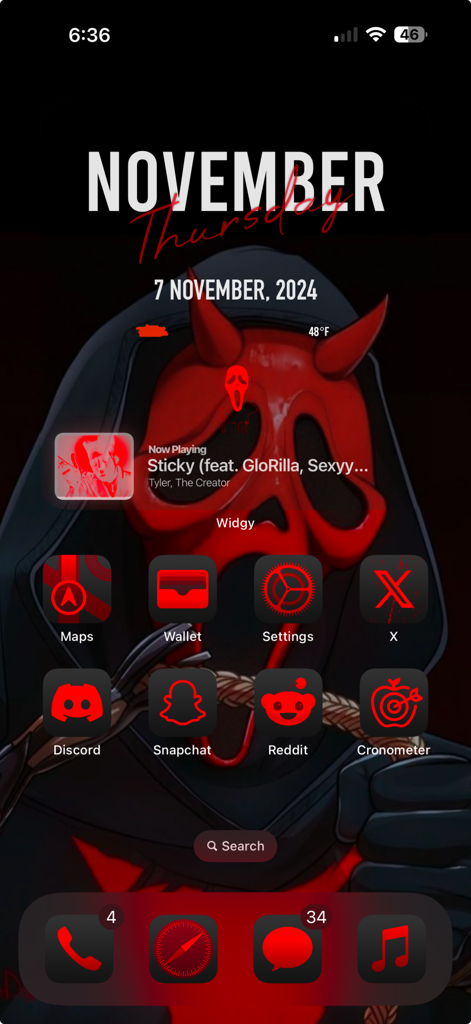 Homescreen with a Widgy on top.