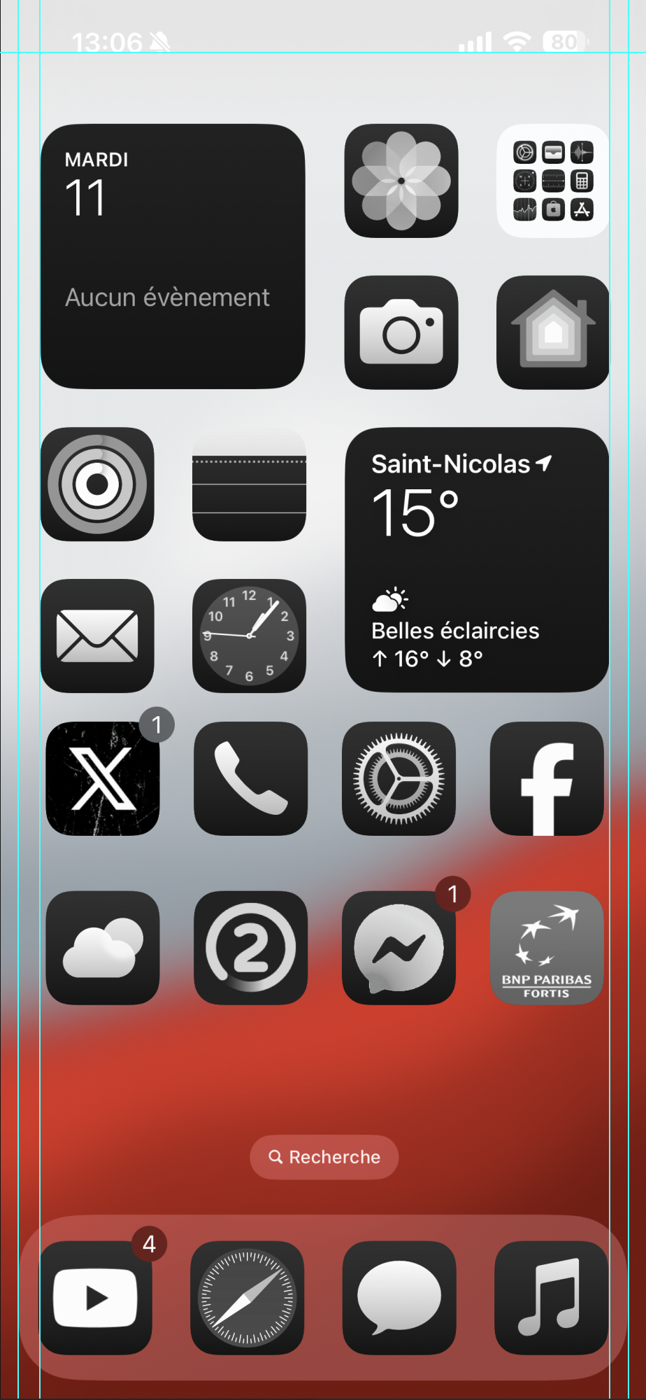 And, to point another bug/glitch: the notification badge is grey on X, while it is dark red on YouTube and Meta’s Messenger.The vertical spacing between X and Mail and weather lines are different and X is kicked over to the right compared to Mail by a few extra pixels. You don’t see any of that?