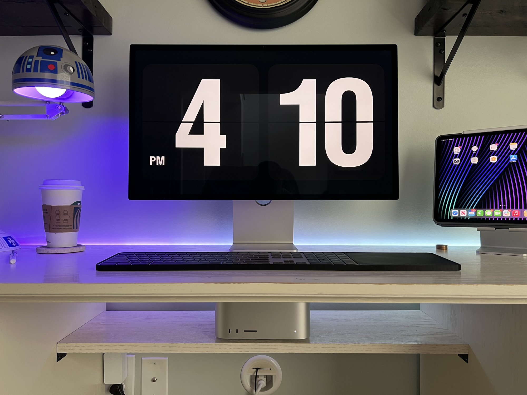 Funny how the elegant Mac Studio doesn't look nearly as sleek when its ports are just about fully-occupied and the cables sprout and external device power supplies are clustered about.
