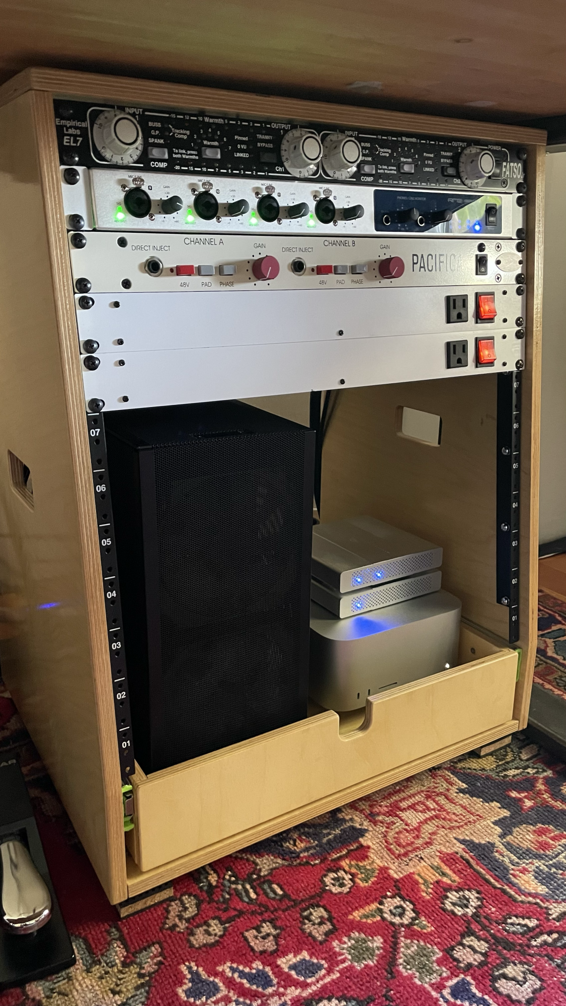 I'll be over shortly to help you with those cables. I love doing cable management, making it all neat and tidy.Finally got everything setup. I'm planning on moving the Studio to a mount under the desk, but until then, it works fine sitting up top.