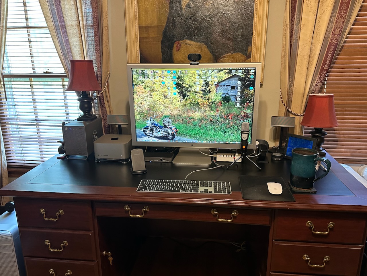 I like that, what stand is your Mac Studio on there? And what RAID storage box is that next to it?View attachment 2386026