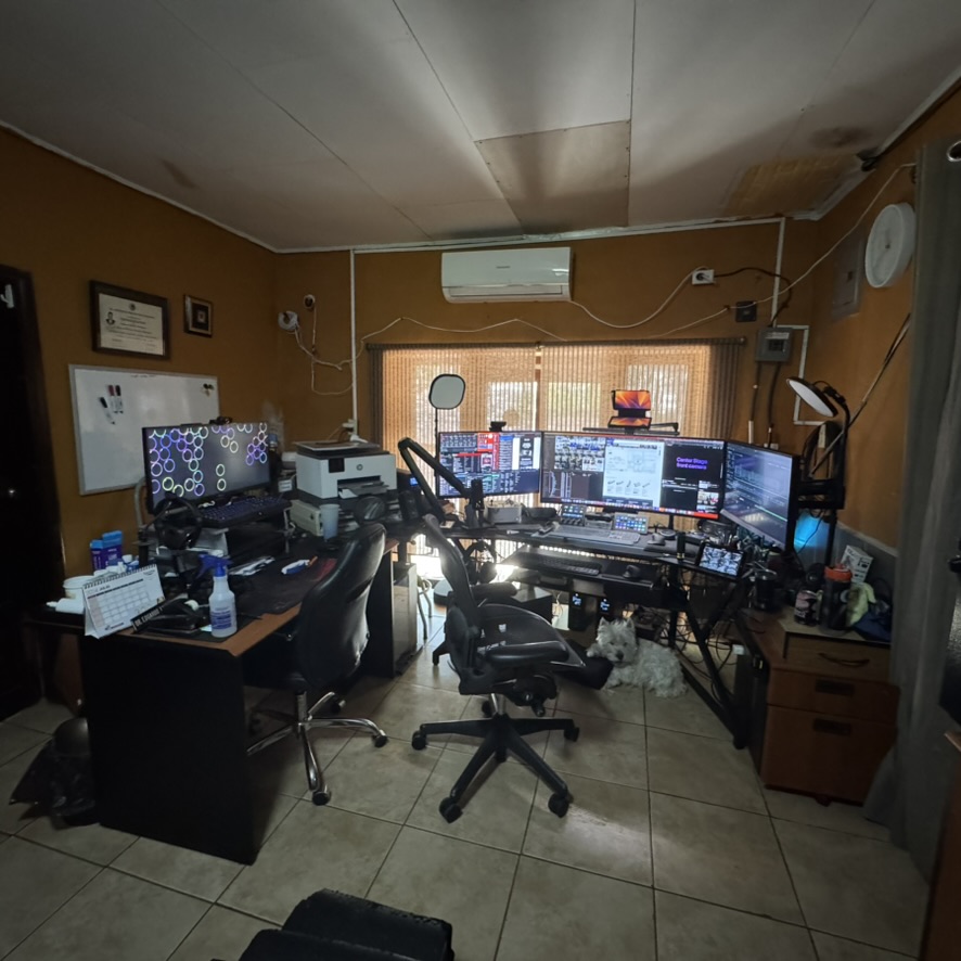 Not seen is my LF Gaming chair. I rotate between this and a Herman Miller Aeron. The LF is great but sometimes I like to switch back to my trusty Aeron, especially in a hot Phoenix summer.