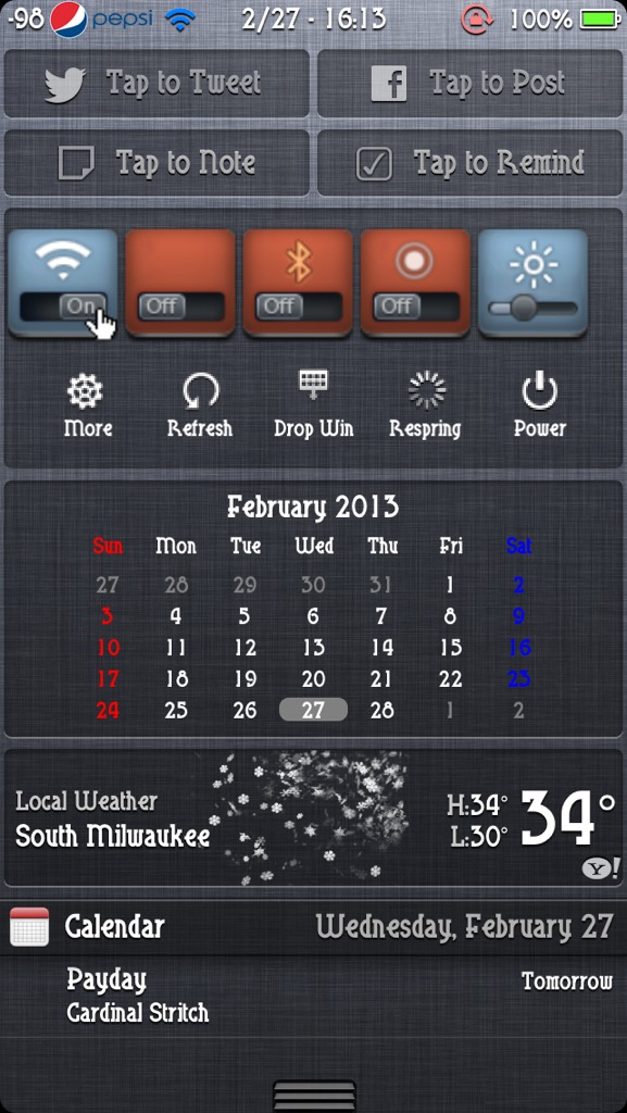 Tap To Note, Tap To Remind, SBSettings, and Calendar For Notification Center.