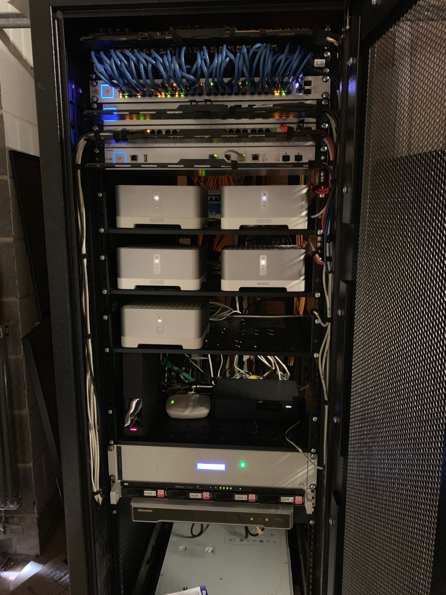 Not in shot 7 x Ubiquiti 802.11AC in wall access points. This is total overkill but gives us amazing WiFi!