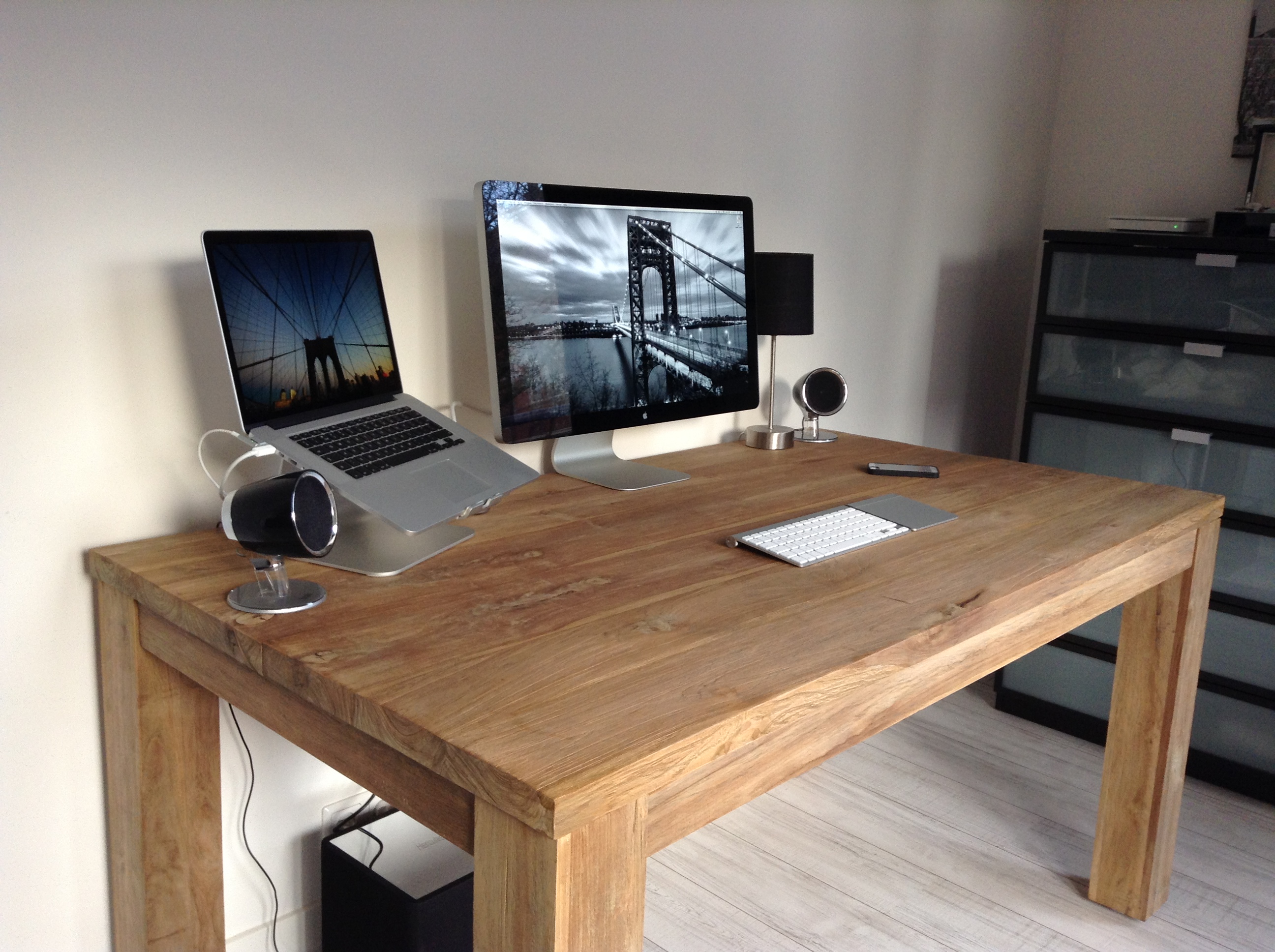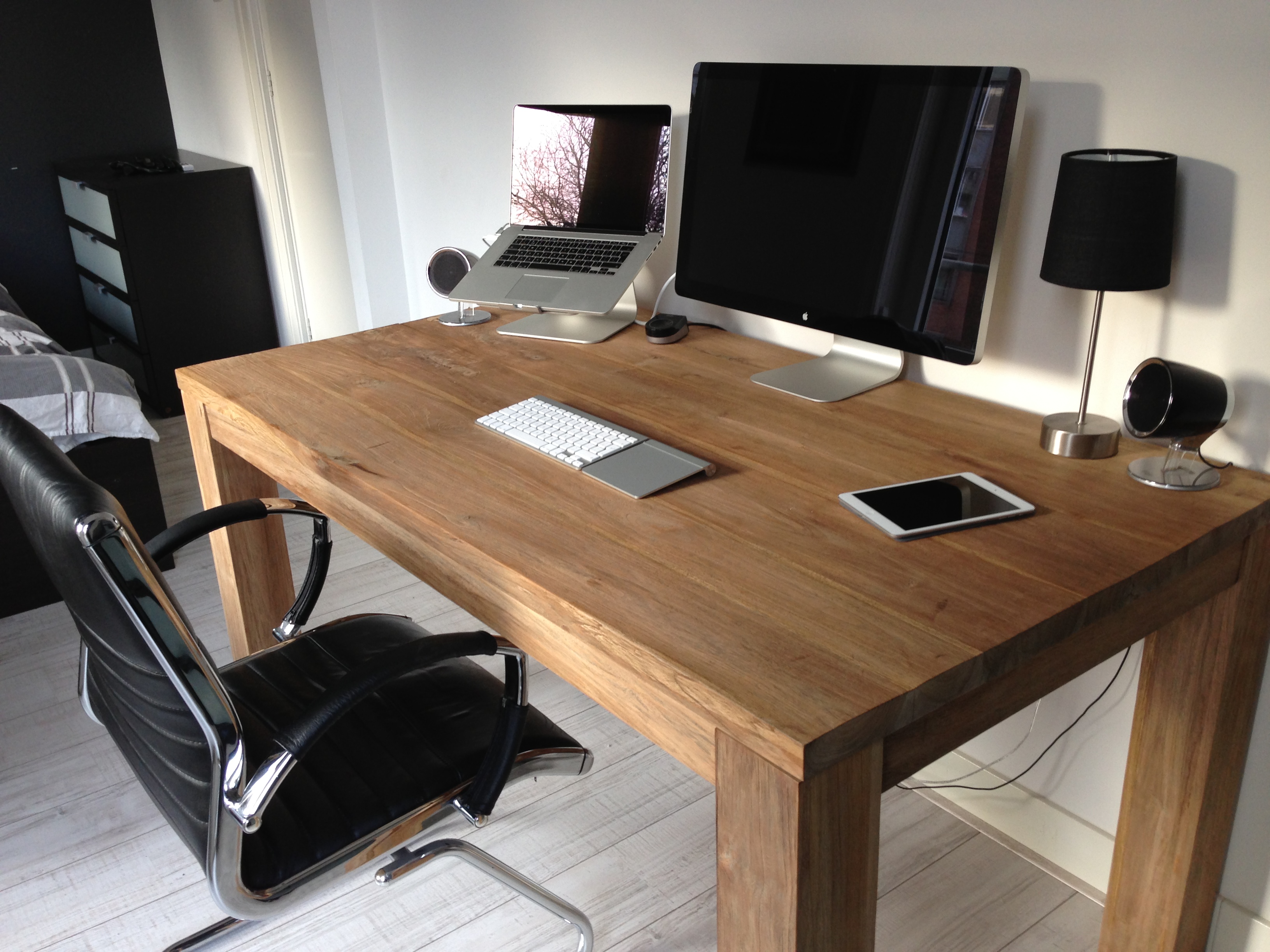So, I returned from my 6 month stay in Madrid, Spain. I'm back home in my beloved apartment (Amsterdam). I, therefore, purchased myself a new desk. A very nice teak oak table. Treated with some oil for good protection and it'll be good for years to come! Expensive but worth it ( I hope.. )