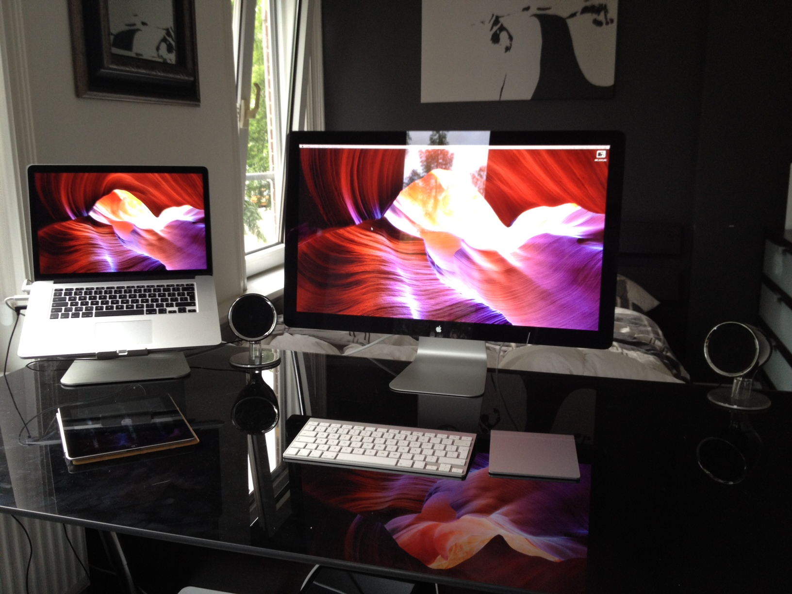 This is my new setup in my bedroom. Just purchased the Thunderbolt display with my retina MacBook Pro. Everything just works so smooth together.