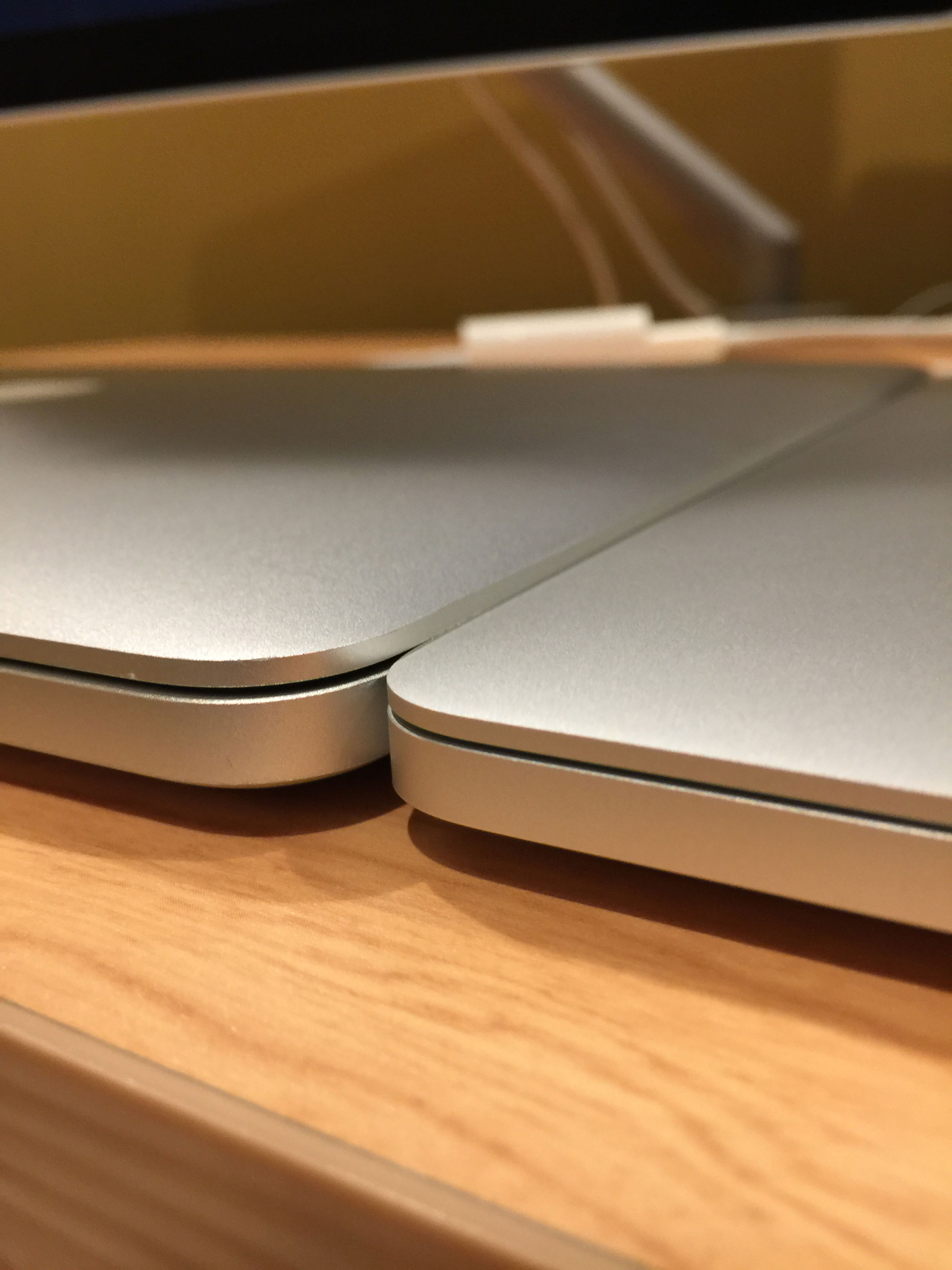 Sorry for the crummy lighting, couple of shots of my 15" and some comparisons with the previous generation.