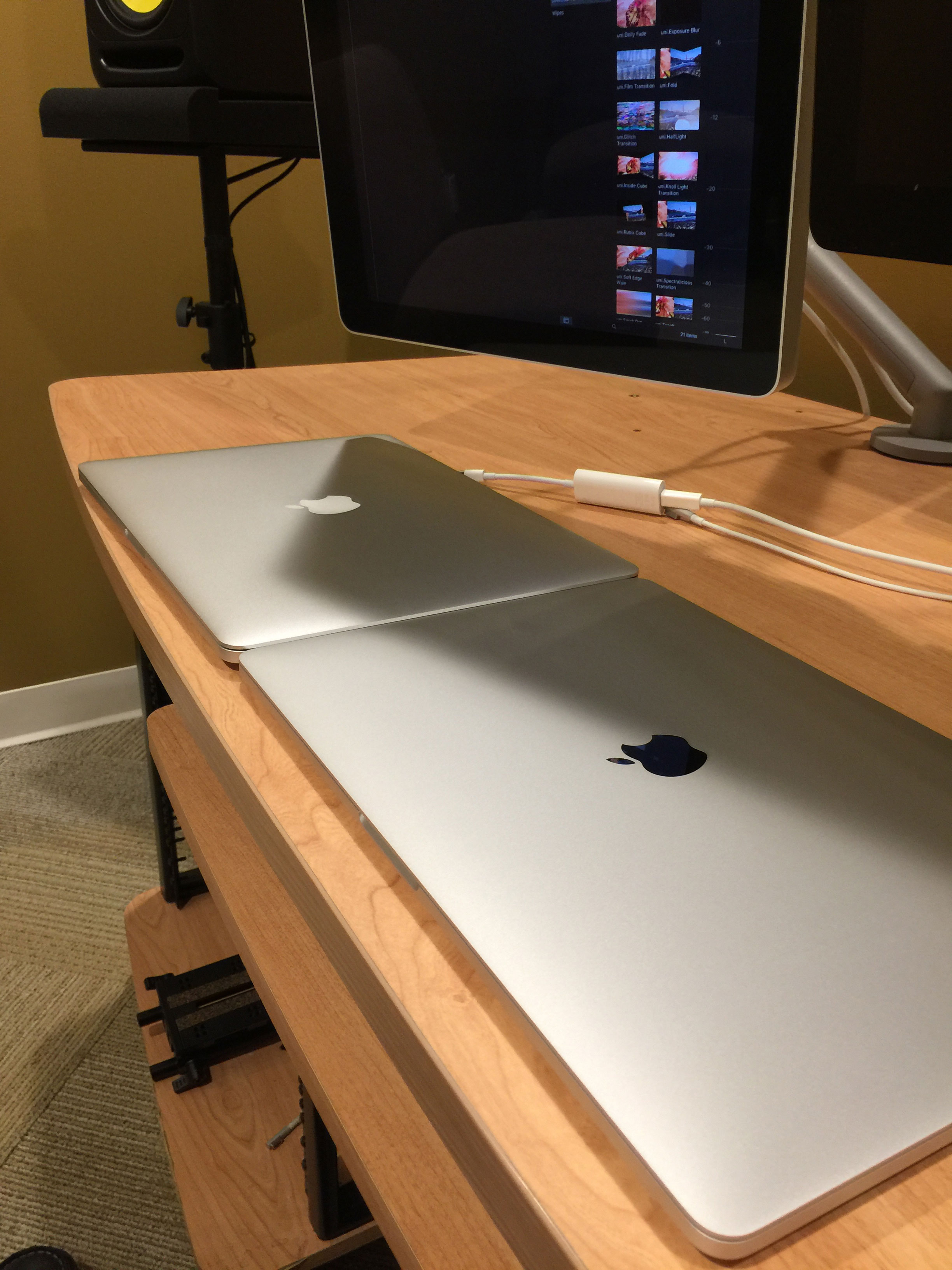 At home I've got mine hooked up to my ancient Thunderbolt Display and 27" LED Cinema Display. Doesn't bug me entirely. I sold my 2015 5k iMac to get this bugger. Still a lot of resolution on those old screens to play with. When I'm at a desk I don't sit too close, so it's not a deal breaker. If the 5k LG monitor Apple co authored offered more connectivity ports (ethernet, USB-A, etc), I would jump on it. For now, I'm just going to play the waiting game and see what the market brings.
