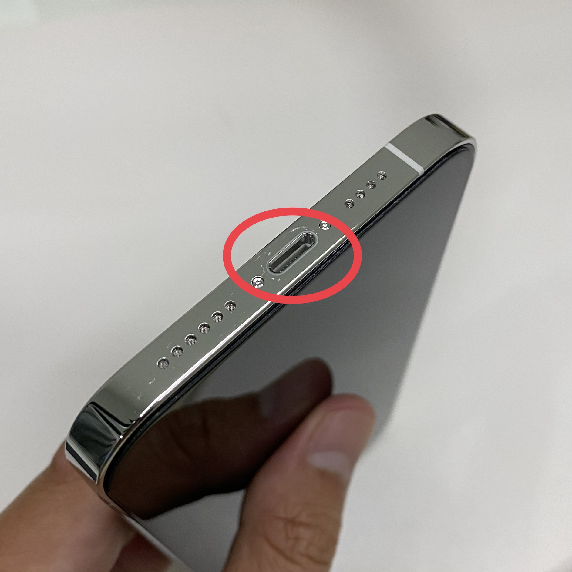 Side note: I can see a light scratch below the port... OPEN BOTTOM CASE.... gah! Well, obv it wouldn't have mattered since my frame was scruffed by the case itself. Annoying.