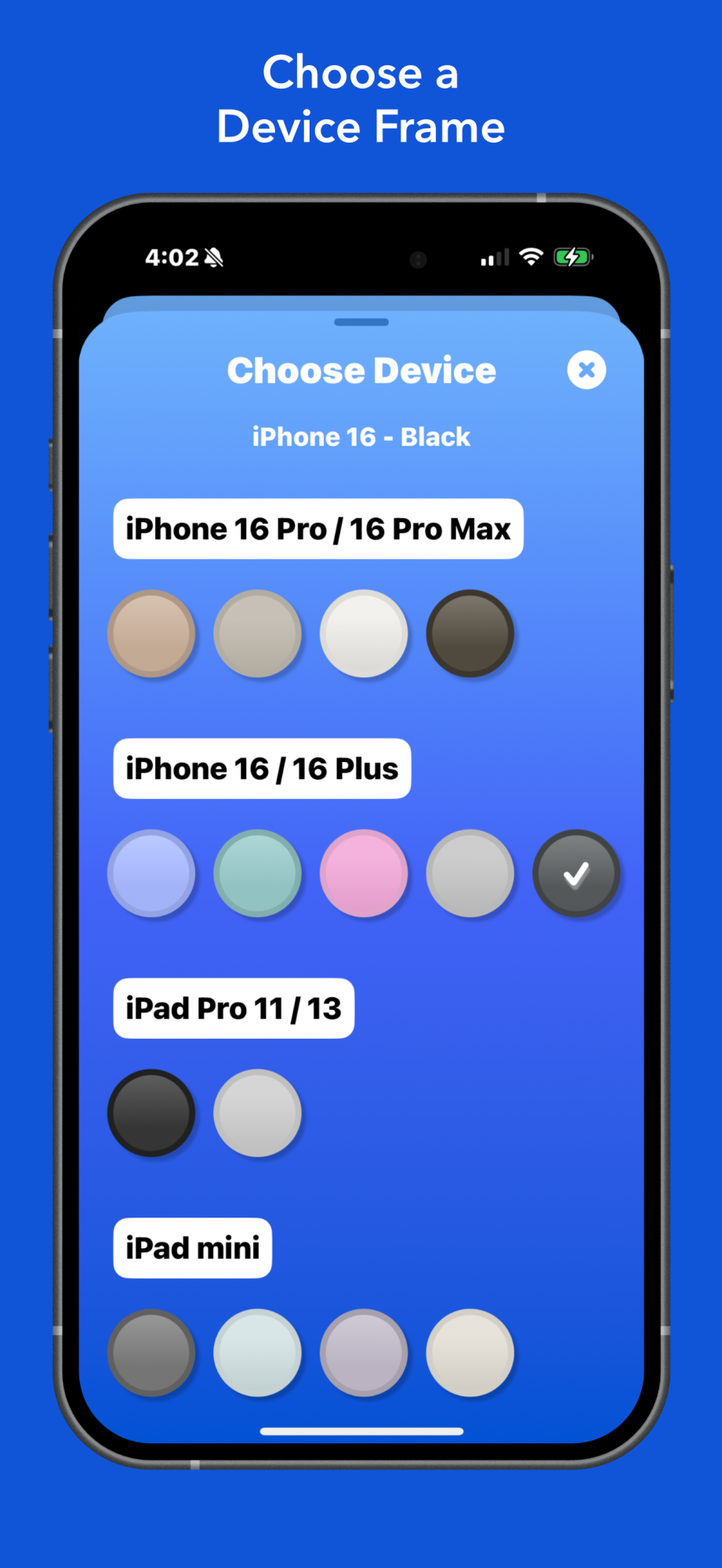 Hi, I have a few apps in the App Store and I often like to create posts/stories with screenshots. But I would like the iPhone/iPad frame to be around the screenshot to look more like a phone. I often just do this in Affinity Designer, but it's kind of a pain. I looked for other apps, but they seem overly complex and often very expensive. (Some people think a tool like this is worth $50 a year 🙄)