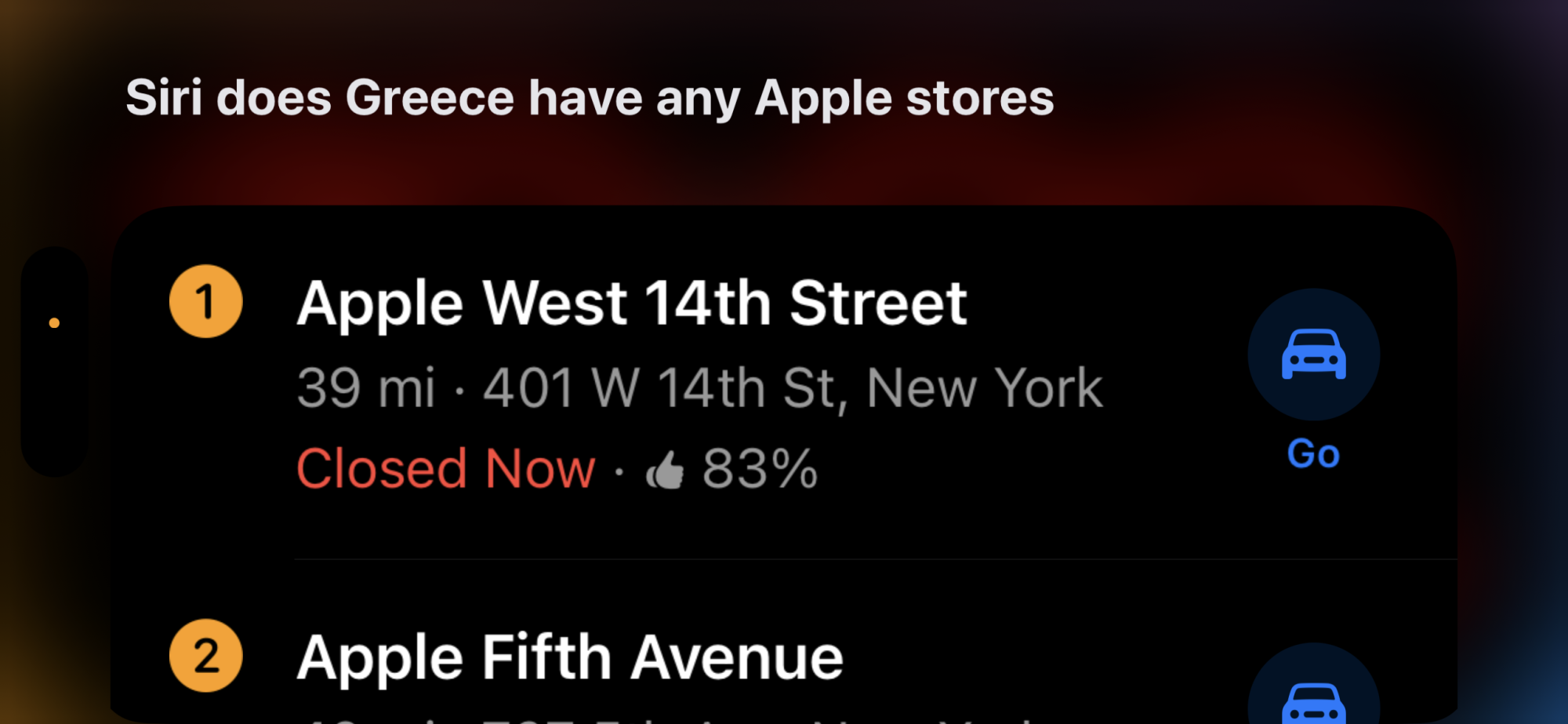 Apparently asking “are there any Apple stores in Greece?” is a completely different question. 🤷🏼Asked Siri yesterday “Does Greece have any Apple stores?”