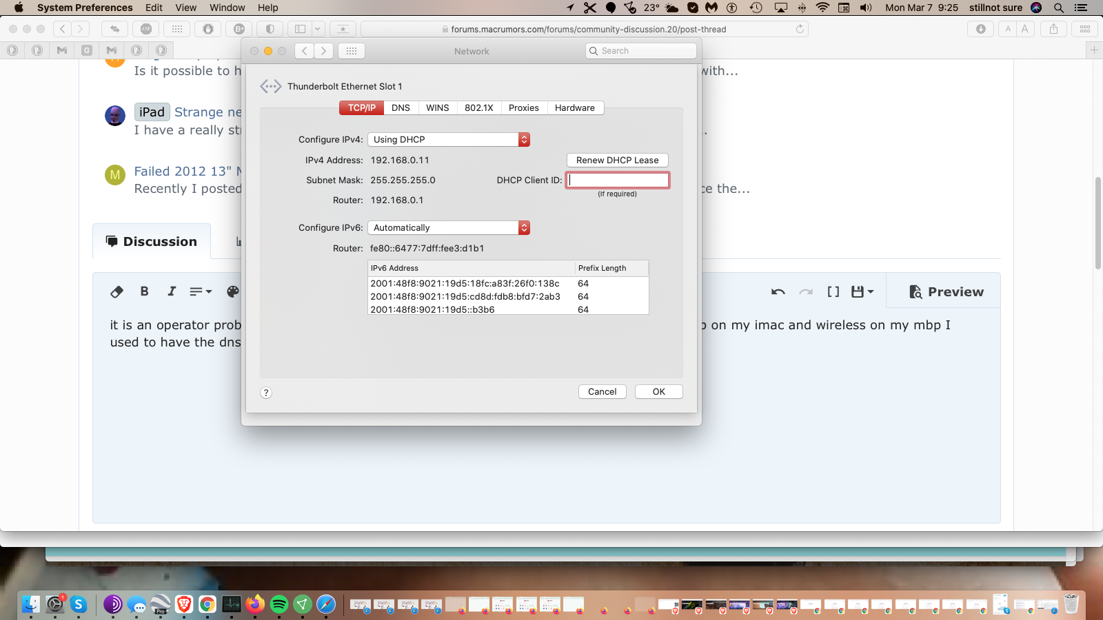 it is an operator problem likley.....I am unversed in network settings....looks like I am on tcp/ip on my imac and wireless on my mbp I used to have the dns set for google .....somehow that got changed- I dont know who to turn too. ip says not them...havent called apple that is such and all day slash your own throat deal-if I could find it online current and correct I would like that.....thanks all