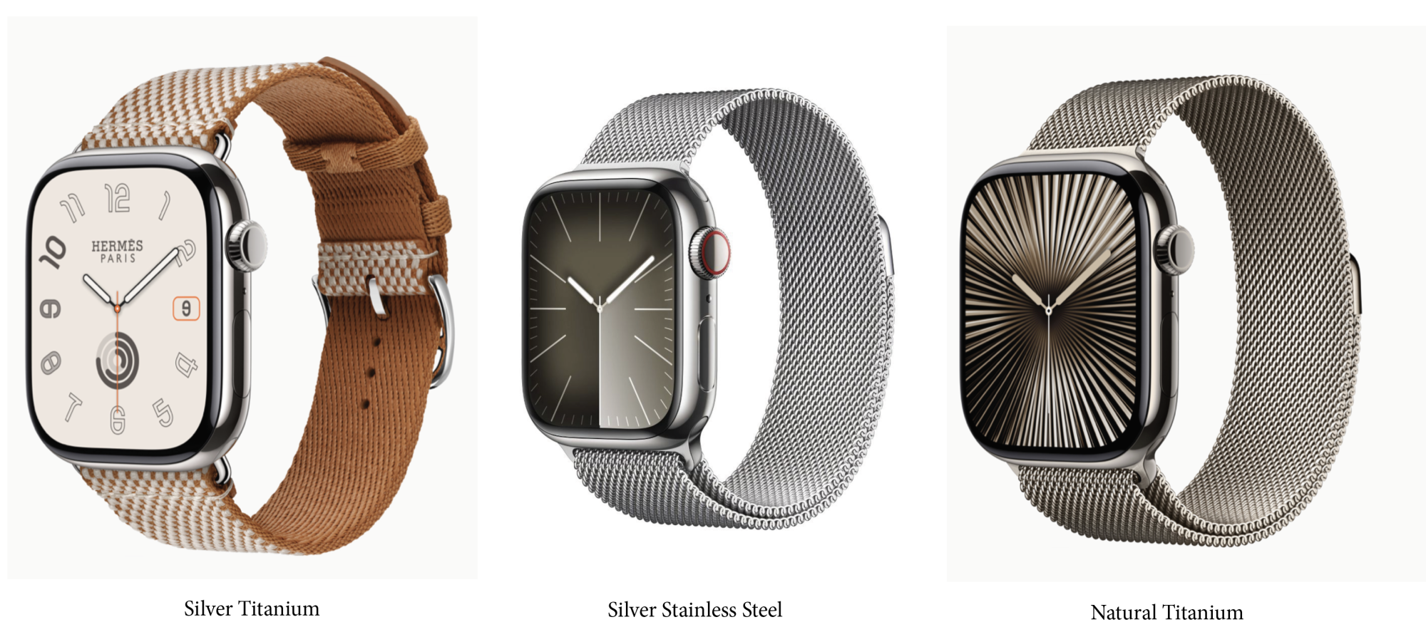 Judging from the second hand photos and videos from the Apple Theatre show floor it seems slate is darker than graphite, but only slightly so. The Natural Ti is really close to the SS silver, with only a slight tint of yellow.