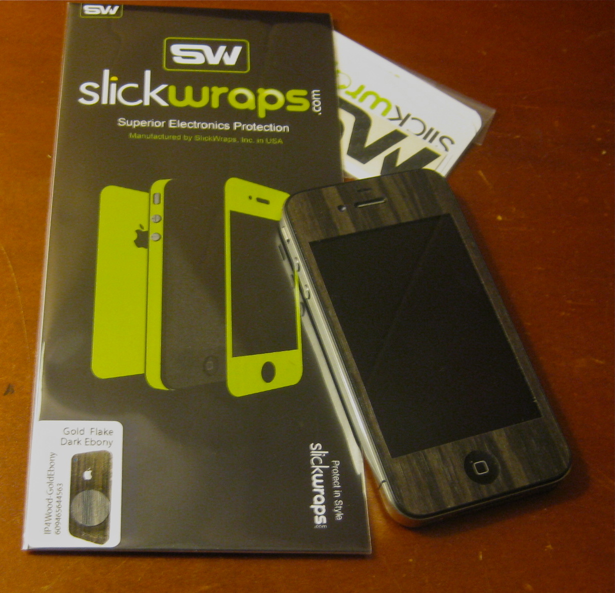 In the market for a iphone 4 skin? Well no matter what version of the apple iphone you have or many other devices slick wraps has you covered. This review is of the slick wraps wood line of iphone 4 skins. There are lots of companies out there that make vynil skins for your iphone 4 but slick wraps isnt your normal ebay seller. The packaging for the slick wraps is simple, a card with the slick wraps logo and which design you are receving wrapped in a tight for fitted plastic bag.