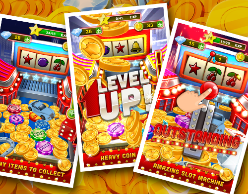 Be careful not to let the coins and the prizes drop to the sides or you will lose them! Level up to get extra rewards, upgrade your abilities to become stronger, pull the slot machine lever down and pray for luck...this is just the beginning!