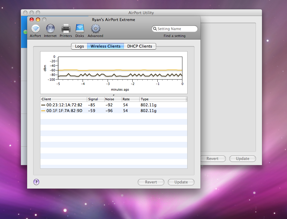 As you can see from my attachment (my iMac is the black line, my housemate who lives downstairs near the router is the yellow line) my signal is very inconsistent as opposed to his who's very consistent.