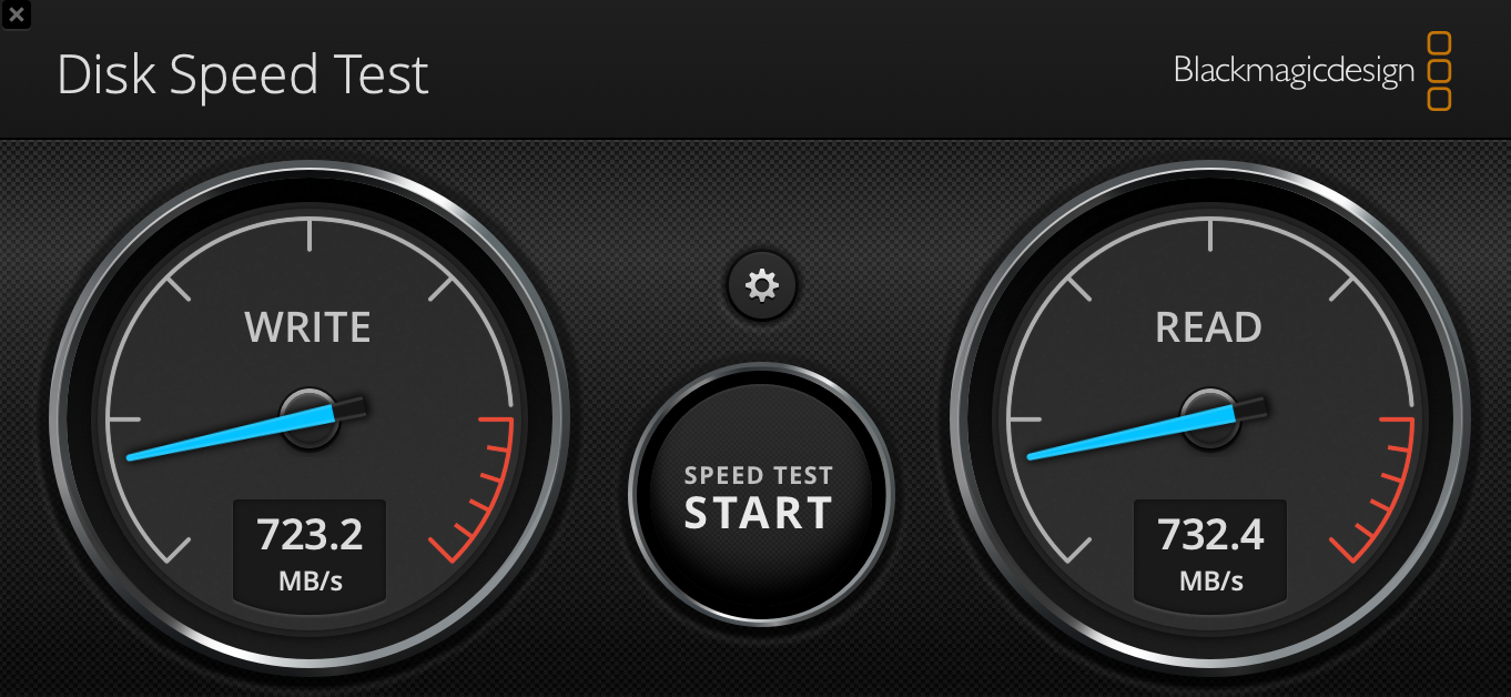I did a Blackmagic disk speed test v.3.3 and the results says that i get max approx. 580MB/s read/write using APFS non-encrypted but I'd expect to get closer to 900MB/s.