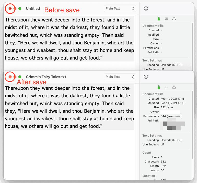 The close button for windows containing saveable documents in macOS Big Sur actually changes depending on the document state. Anyone else notice this? It's pretty subtle, but I'd never really noticed it consciously until today.