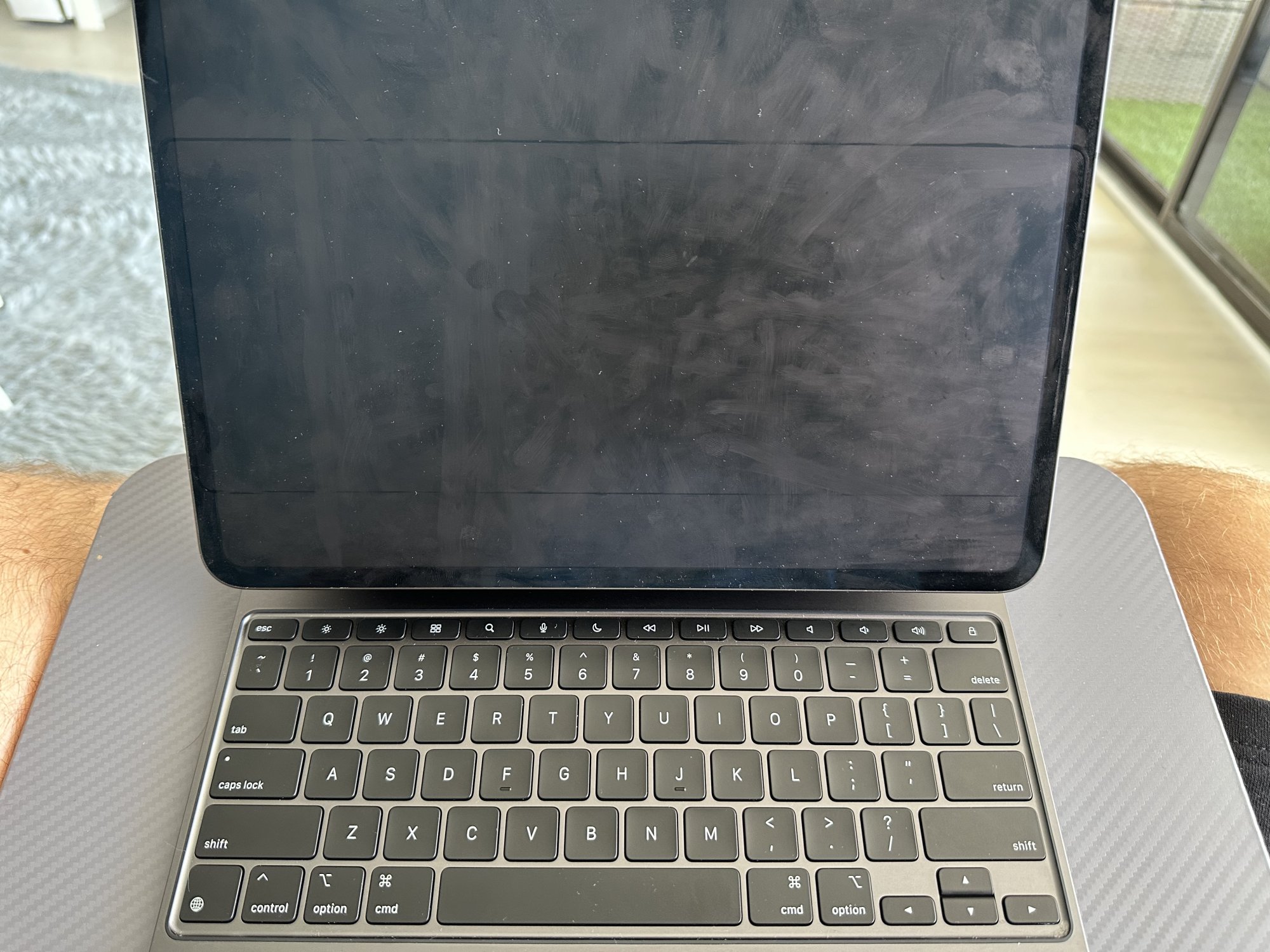 Anyone else finding these print lines on their new Nano/textured iPad Pros from the rubber protectors on the Magic Keyboard?