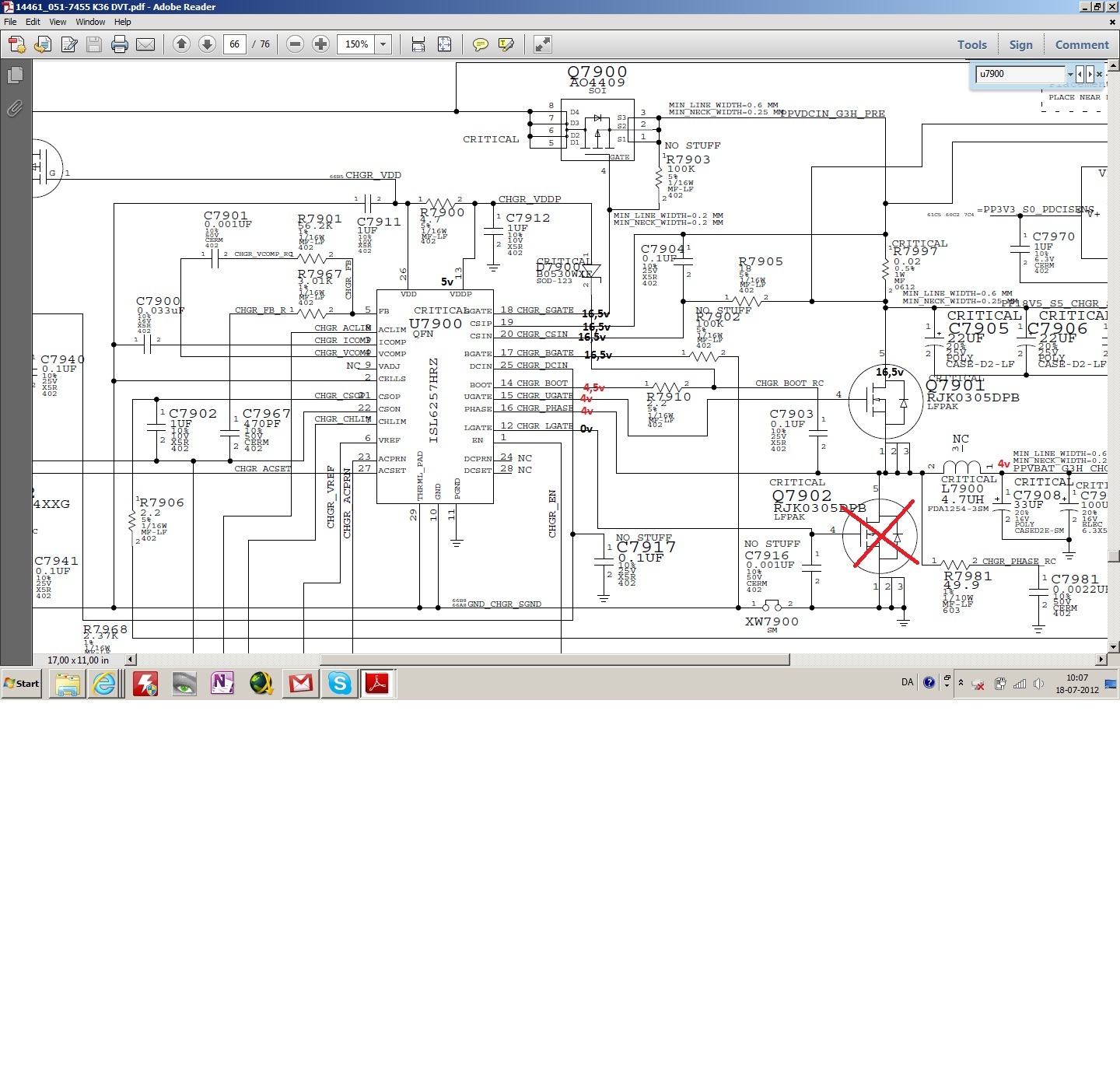 I just received the cap 47pf, replaced it but I'm still getting 1.9V. Now I'm wating for 2k Ohm resitor, I will tack it on the top of the other one to see any voltage changes. Let's say if that won't be enough to get the SDA line going do you suggest maybe a quick reflow of the charger IC or SMC chip. Or you think that wont help?