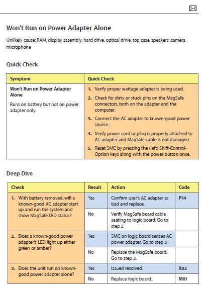 An extract from Service and repair manuals of macbook pro, troubleshotting section