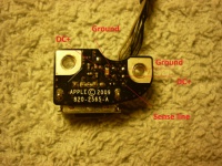 Second lesson: maybe I have a bad DC IN board too like Kharlitro (my PN is 820-2565-A). I soldered two short wires to the +V and -V pins in the magnetic part. I use this to supply 16.5v to my MBP using a different (non-Apple) power supply and it did not do a thing to the MBP when I connected it, as if the externally supplied power is not even there (like a bad DC IN board). I did measure the accessible pins of the DC IN board, and I saw the 16.5v there, but to measure at the smaller plug end of the board, I have to take the logic board out, and I haven't done that yet. Stay tuned.