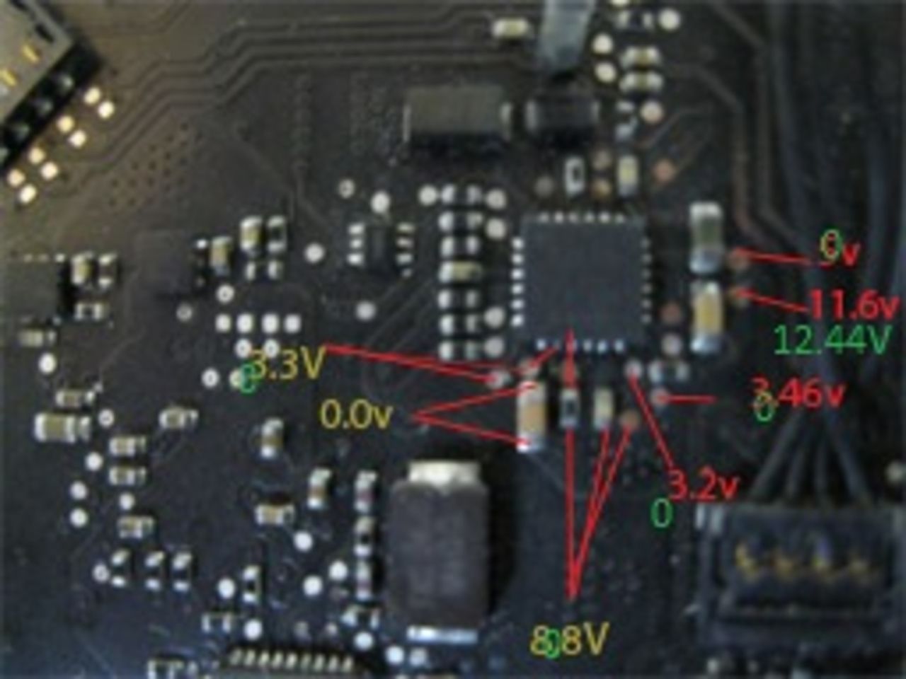and further worse i twice slipped with my meter prongs shorting a 12v cap to a 5v cap and it seemed to smoke around the U2600 usb controller chip.... aswell as kill 5v to 4.0. kill 3.3v completely (still have g3hot) and the second time a slipped it did the same, now it wont react to the power button (i dont think)