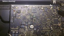 It did not had water but wine damage, (rosé, if it makes a difference) and would not boot at all when I got it. I removed the battery, cleaned the board connected things all together again and it started to boot, fan full speed and the immediate shutdown. Then no way to start it with the power on button, neither using jumpstart pads on the LB.