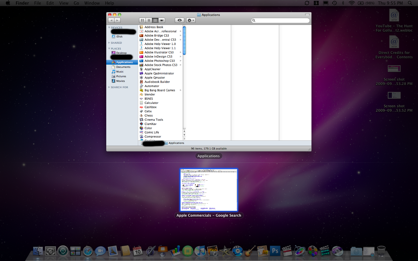 3-Minimized windows in the dock show in a small lower section when using expose.