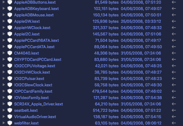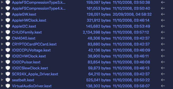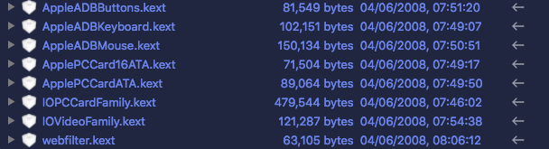 Have managed to compared which kexts have been removed in each build since 10a96 - as working on the assumption that PPC stuff would be being stripped rather than actively patched or added up: