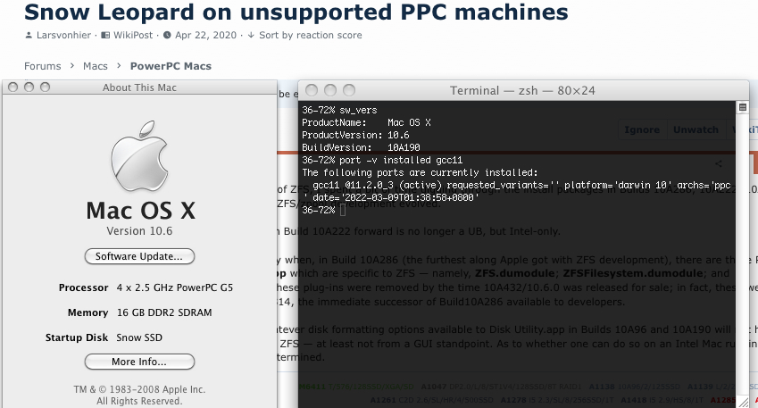 This becomes noteworthy when, in Build 10A286 (the furthest along Apple got with ZFS development), there are three PlugIns added to Disk Utility.app which are specific to ZFS — namely, ZFS.dumodule; ZFSFilesystem.dumodule; and ZFSPools.dumodule. These plug-ins were removed by the time 10A432/10.6.0 was released for sale; in fact, these were removed from Build10A314, the immediate successor of Build10A286 available to developers.