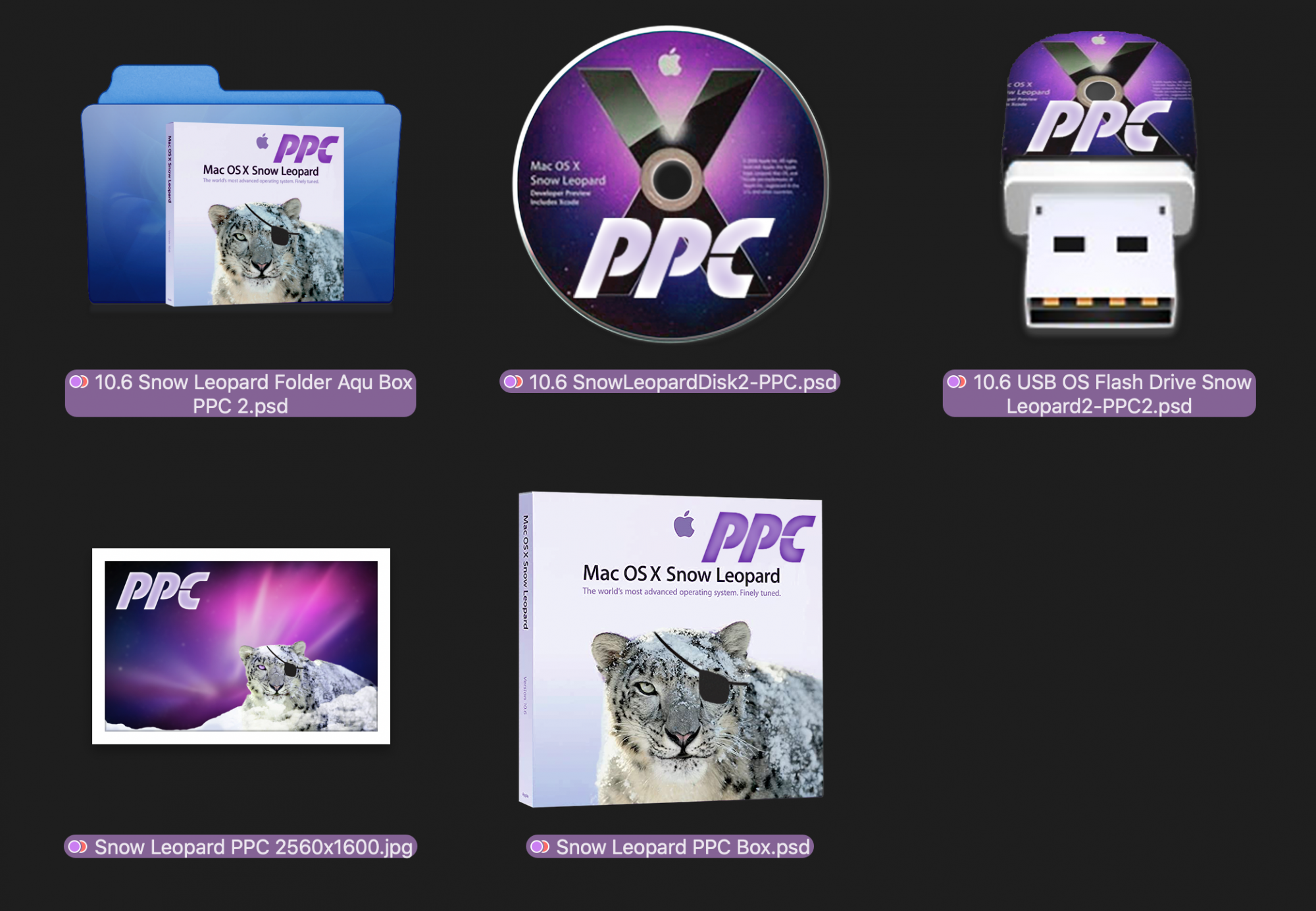 Icons are in PSD, so feel free to edit and make your own. Quality is a little rough due to sources I could find online, but should me more than enough on older PPC Macs. All you have to do is copy/paste icons into the icon field under the Info panel of a disk image or files/folders.